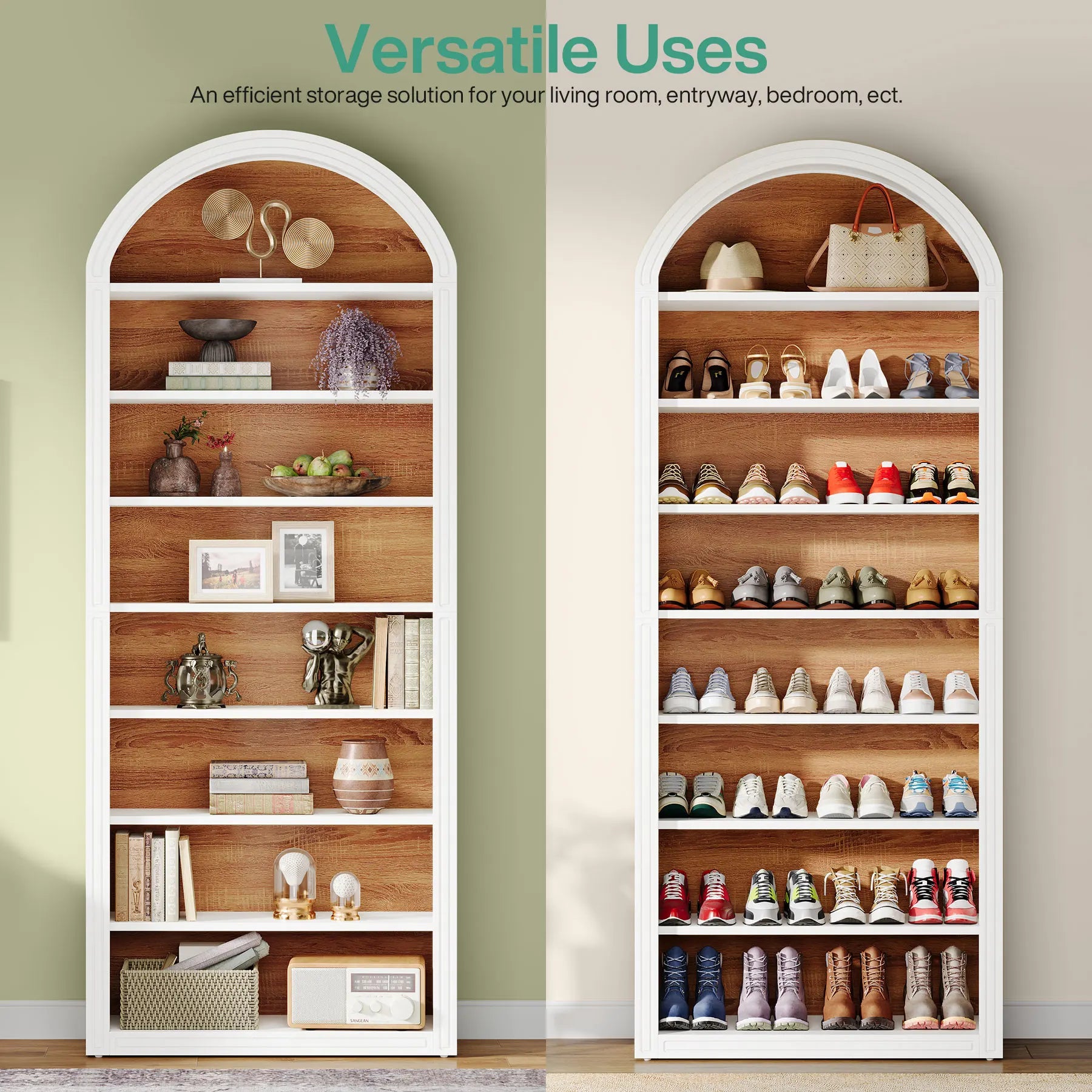 MonoWood 78.7" Tall Bookshelf, Modern White Arched Bookcase with Storage Shelves, 8-Tier Floor Standing Open Display Shelving