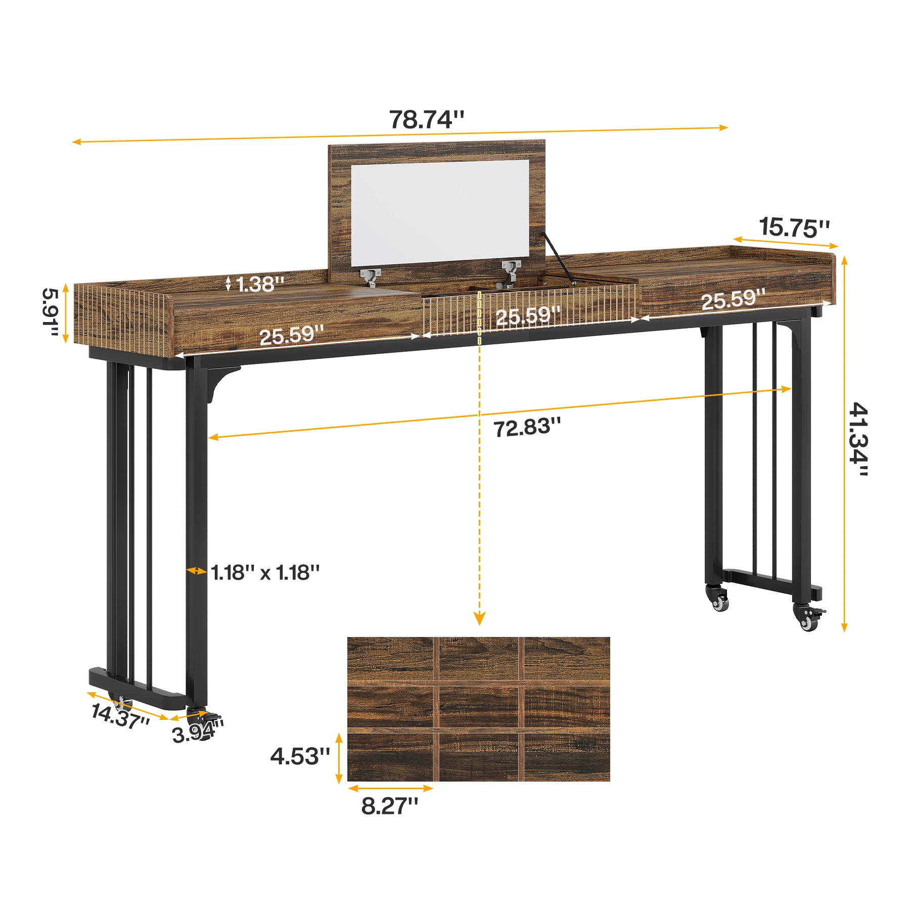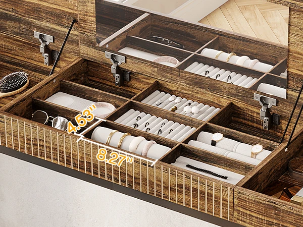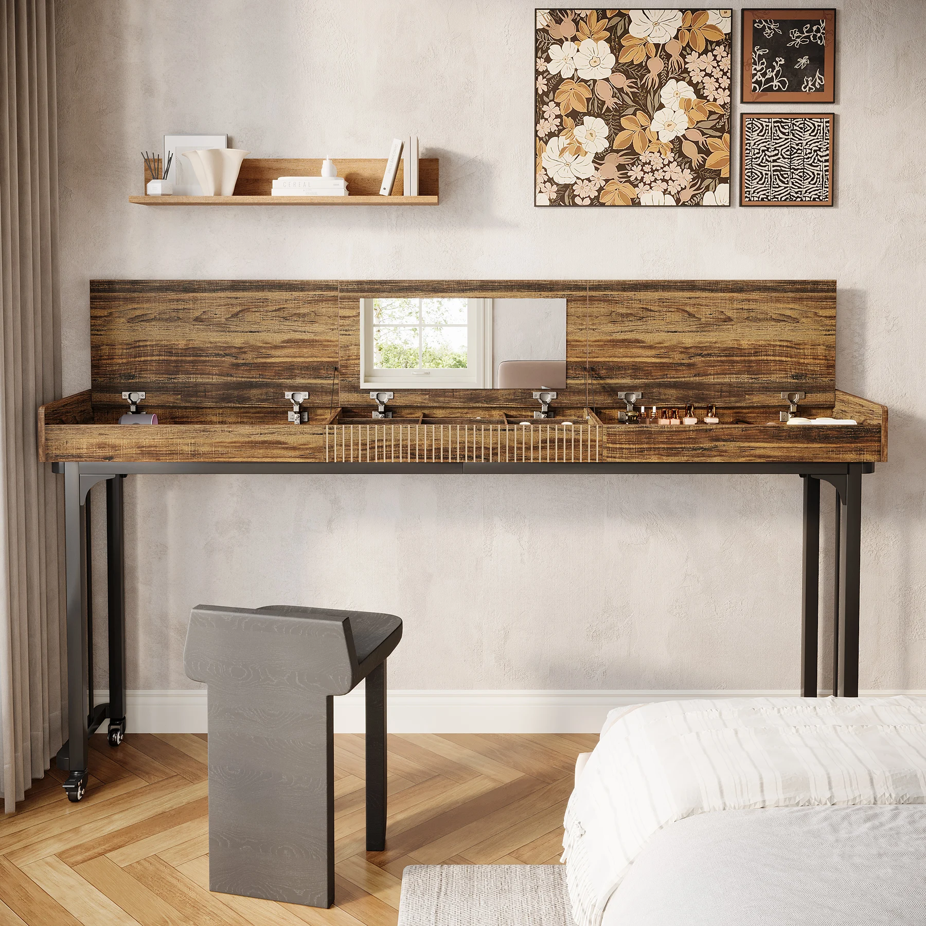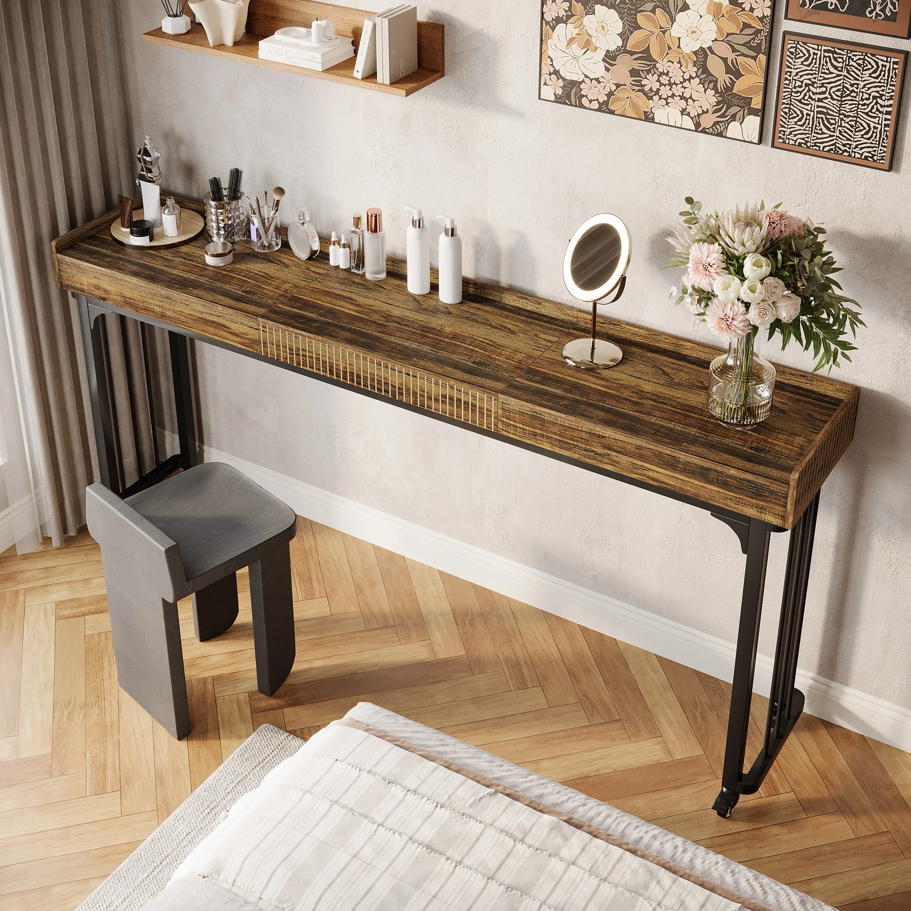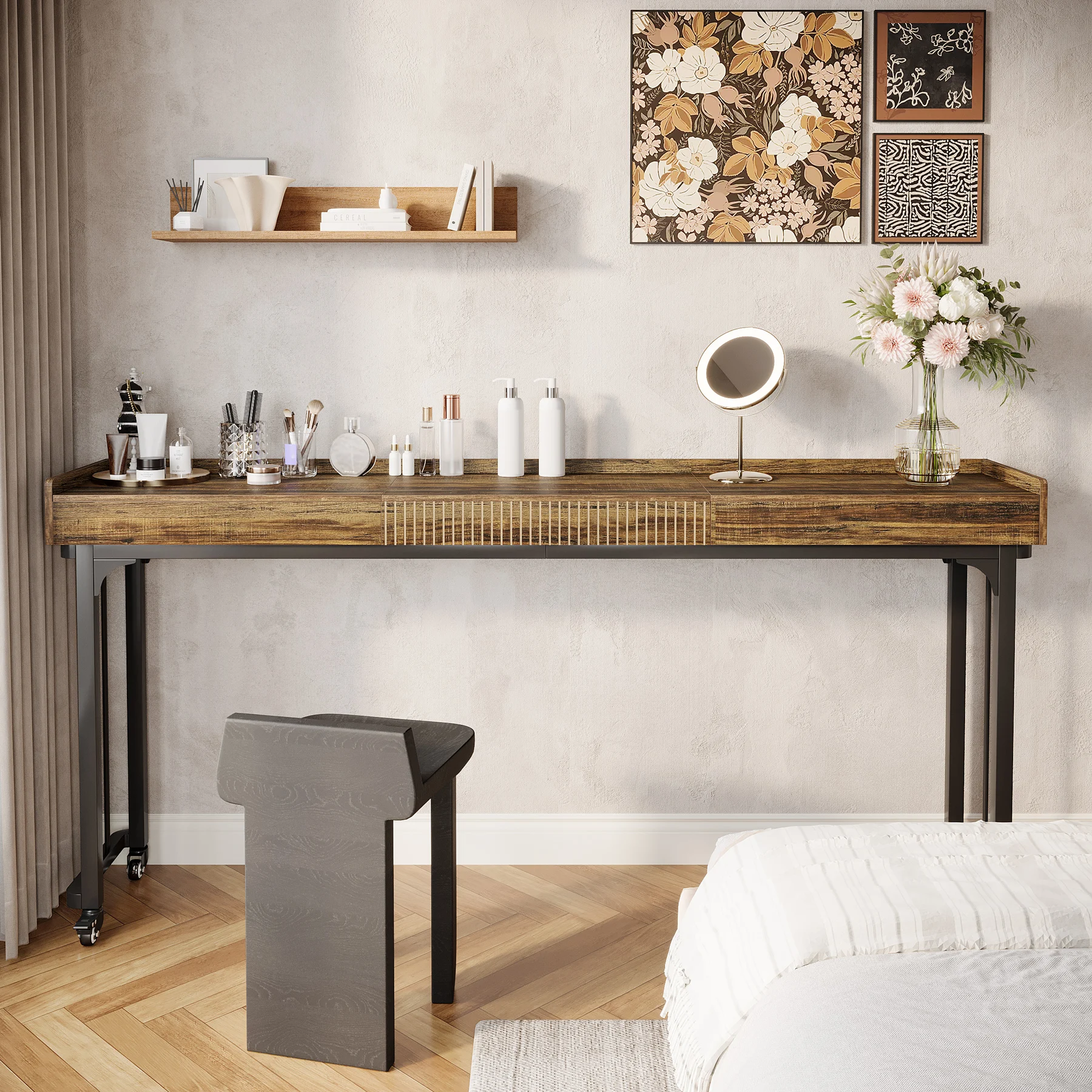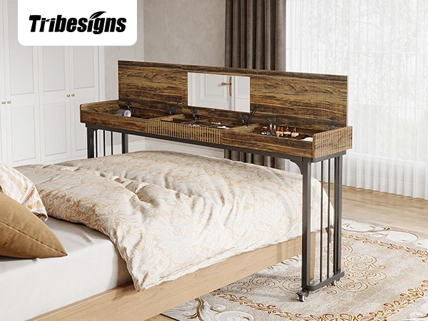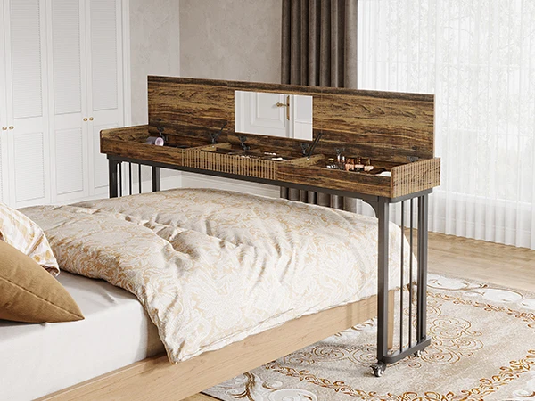 Mobility & Stability: The mobile vanity desk features lockable wheels for easy maneuverability. You can slide it effortlessly into place and lock it securely for stability during use