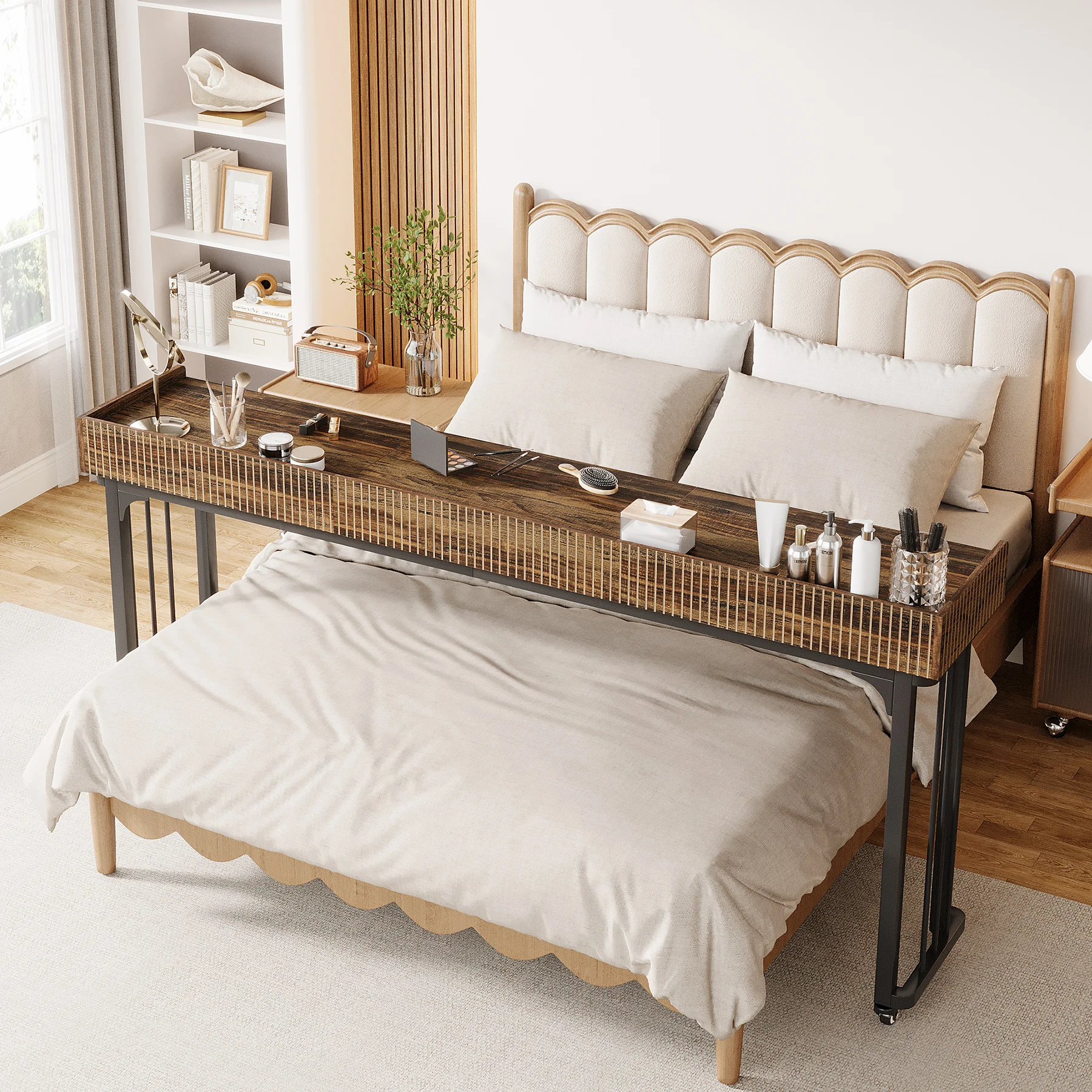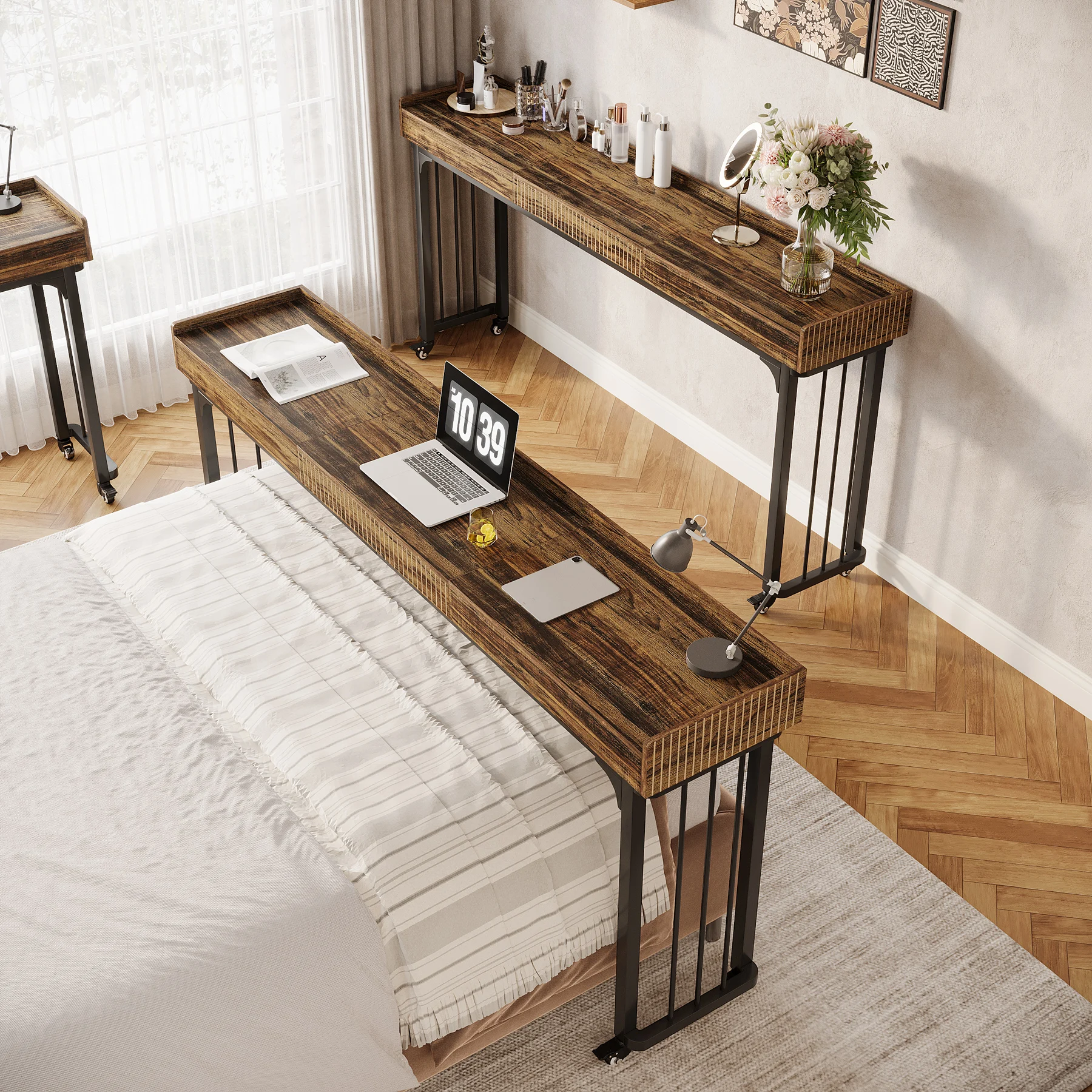 MonoWood 78.8-Inch Large Over Bed Table with Wheels, Mobile Computer Desk Makeup Vanity Desk with Storage