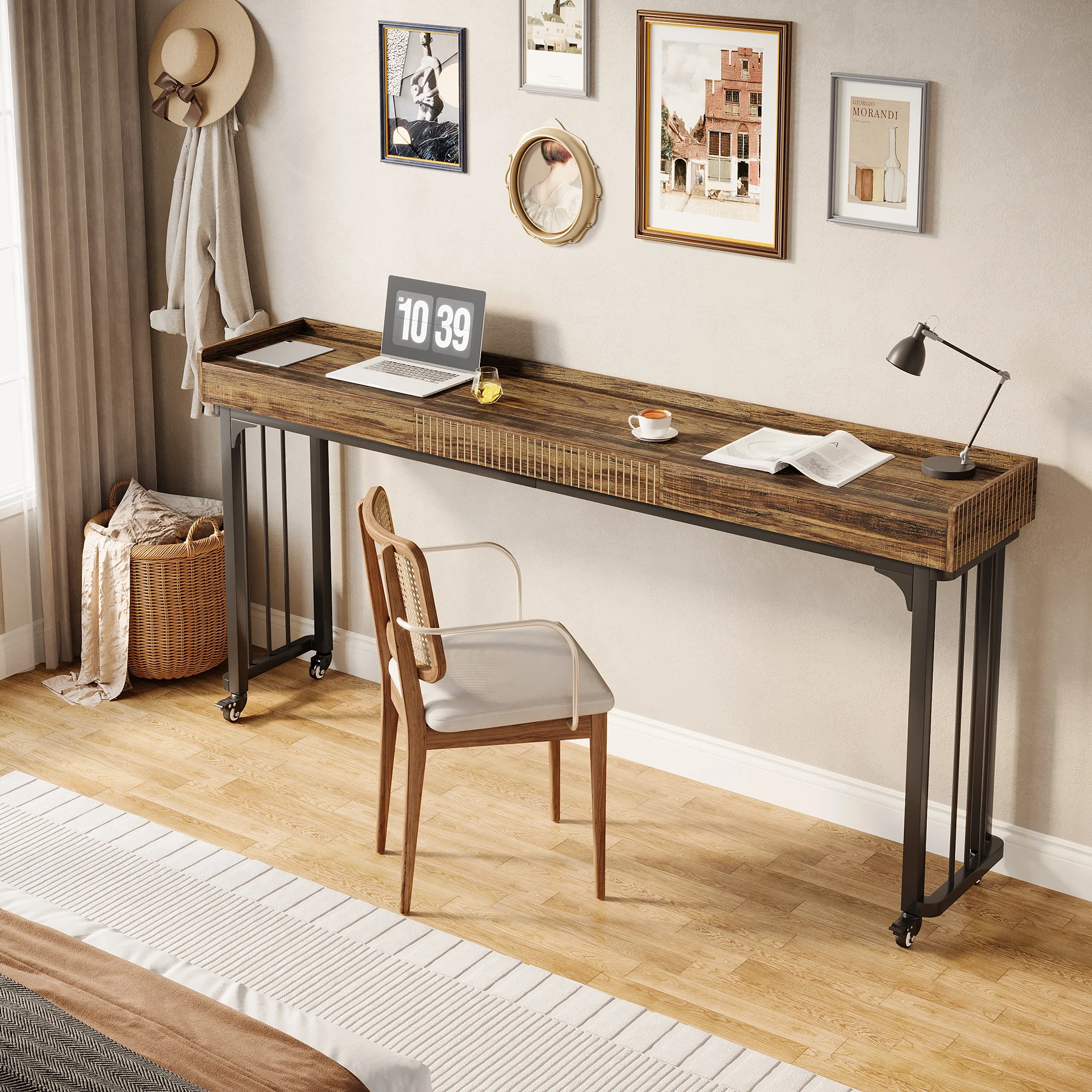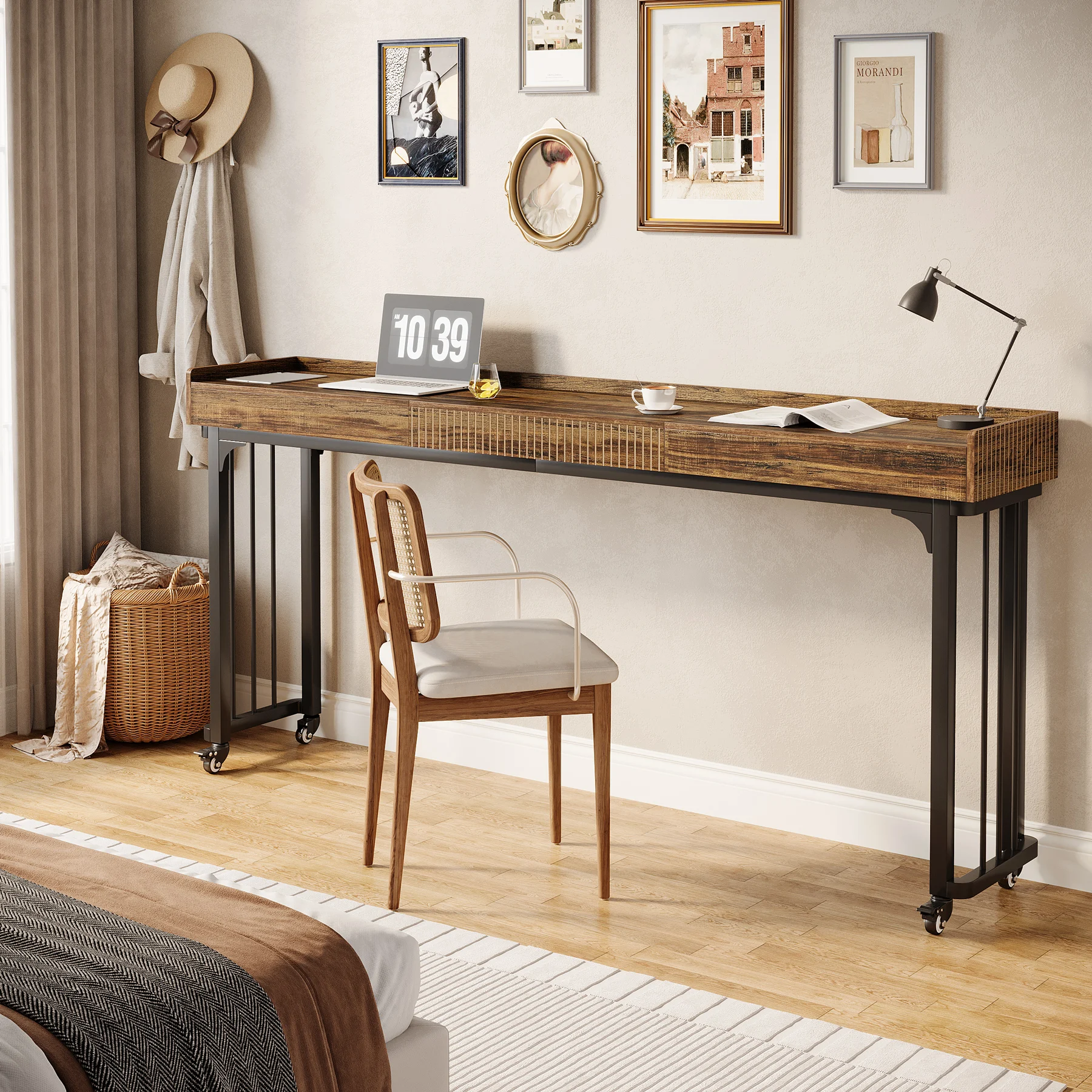 Multifunctional Use: The bed desk, with its large 78.7" x 15.7" surface, offers plenty of space to hold your laptop, books, meals, or other essentials. It can function as a computer desk, a sofa table, a standing workstation, or even a dressing table