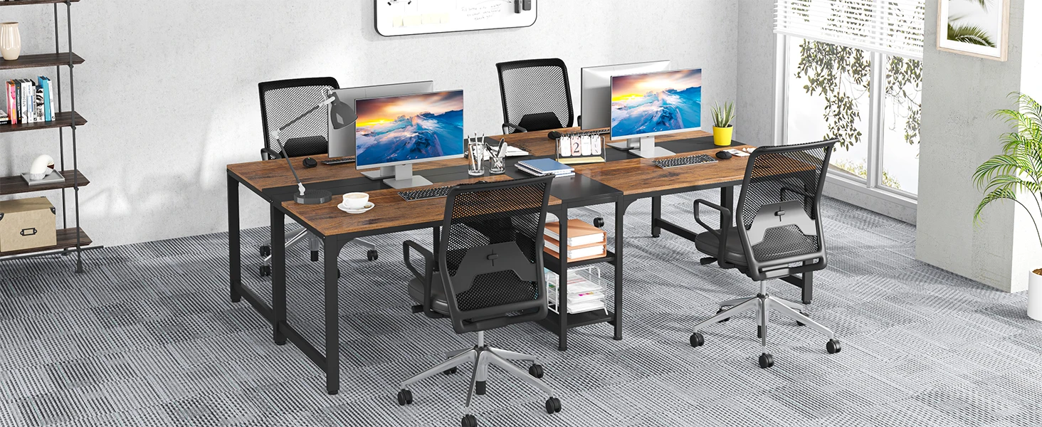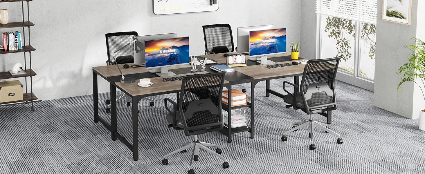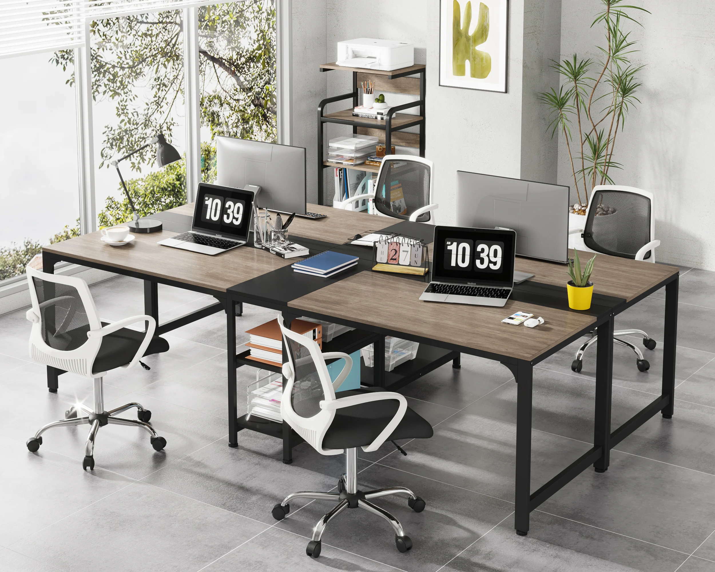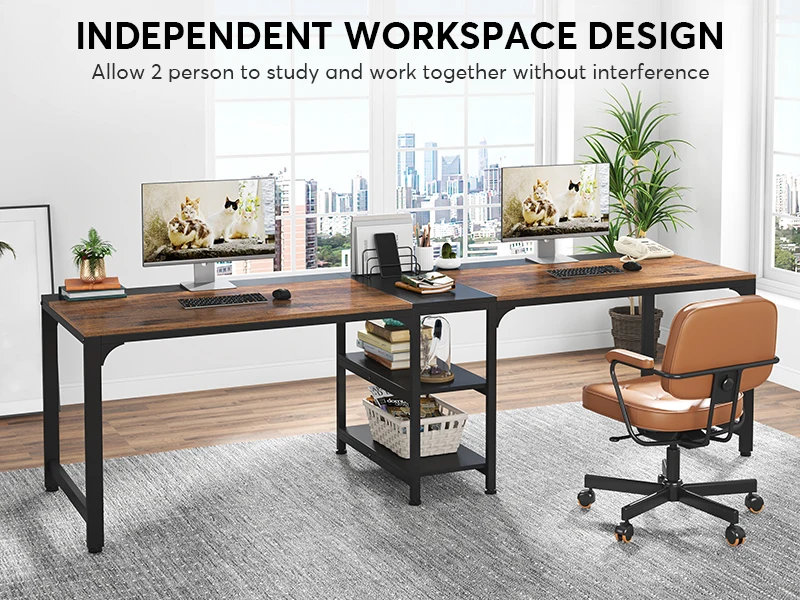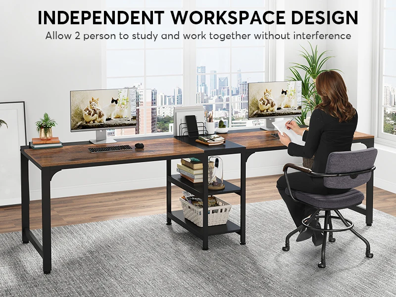 【Functional with Practical】: This home office desk for 2 people is a combination of two desks and storage shelves, constructing a comfortable at-home workstation; It also could work as a computer desk, writing desk, office desk, training table, gaming desk, meeting table, etc just like you want.