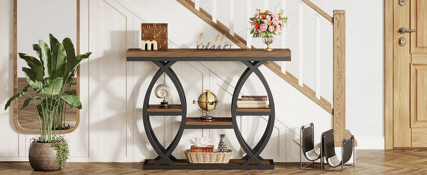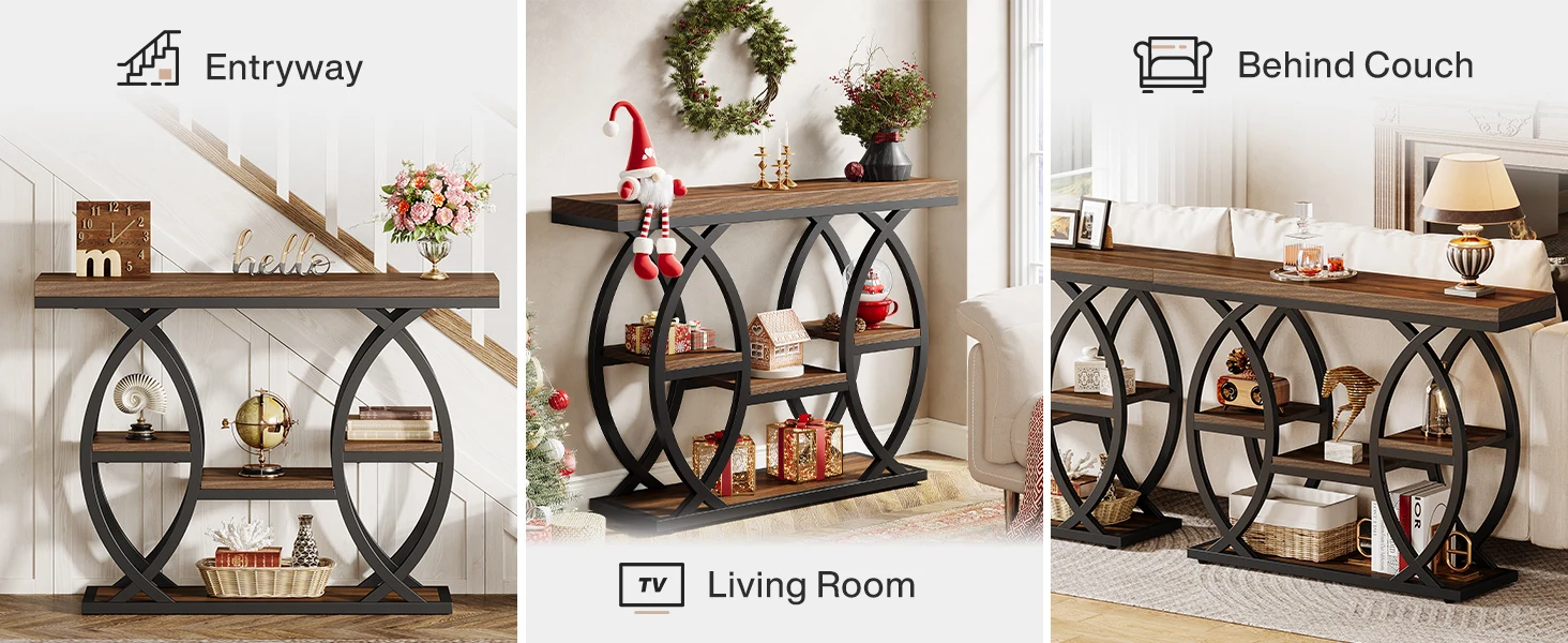 [Practical & Multipurpose]: This narrow table serves multiple functions—it can be used as a console table in the entryway, a sofa table behind your couch, a TV stand or storage shelf in the living room, or as a bar or accent table. Perfect for storing photos, collections, plants, and more, it enhances the functionality of your living room, entryway, hallway, kitchen, or corridor.