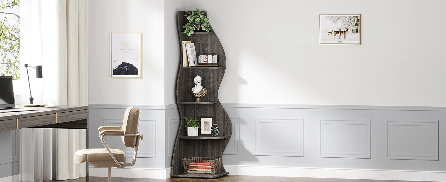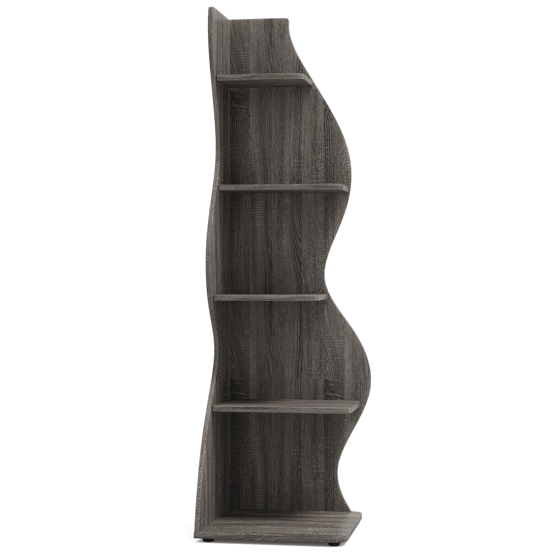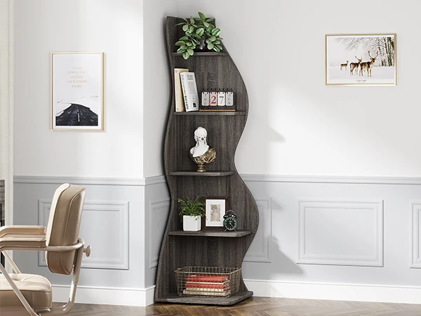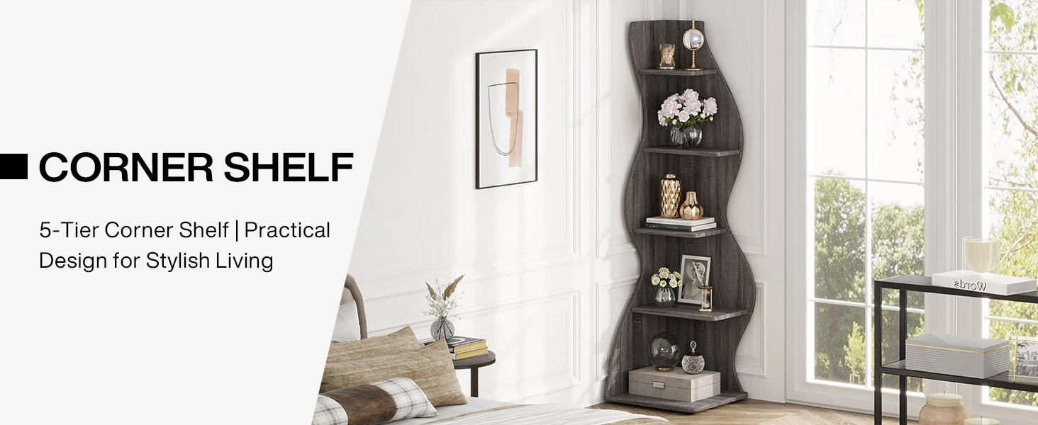 MonoWood Corner Shelf, Modern 5-Tier Wall Corner Bookshelf, Stylish Corner Small Bookcase Storage Rack Plant Stand