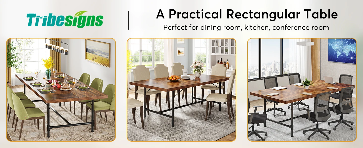 durability and exceptional sturdiness.【Rectangular Dining Table for 6-8 People】 Measuring 70.87" W x 35.43" D