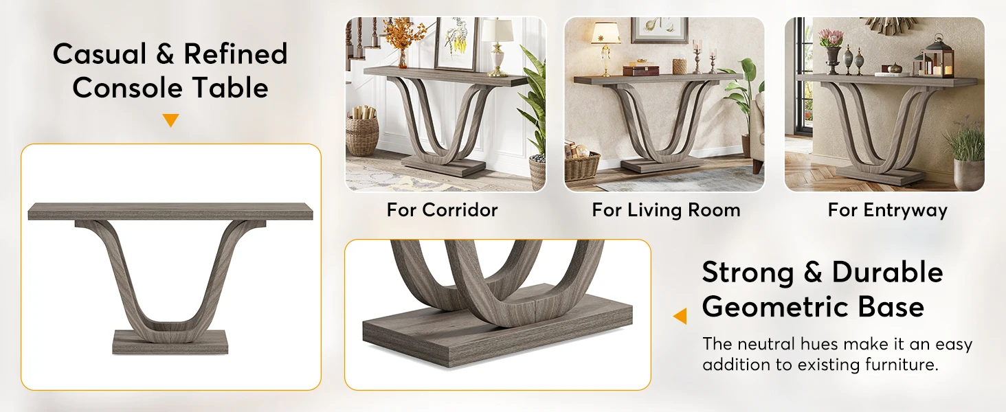 Well-Structured U-Shaped Design - The unique U-shaped leg design serves both visually appealing and practical purposes - providing exceptional stability and weight-bearing capacity. With our well-structured design, the entrance table can withstand the wear and tear of long-term use, ensuring it remains a staple piece in your home decor for years to come.