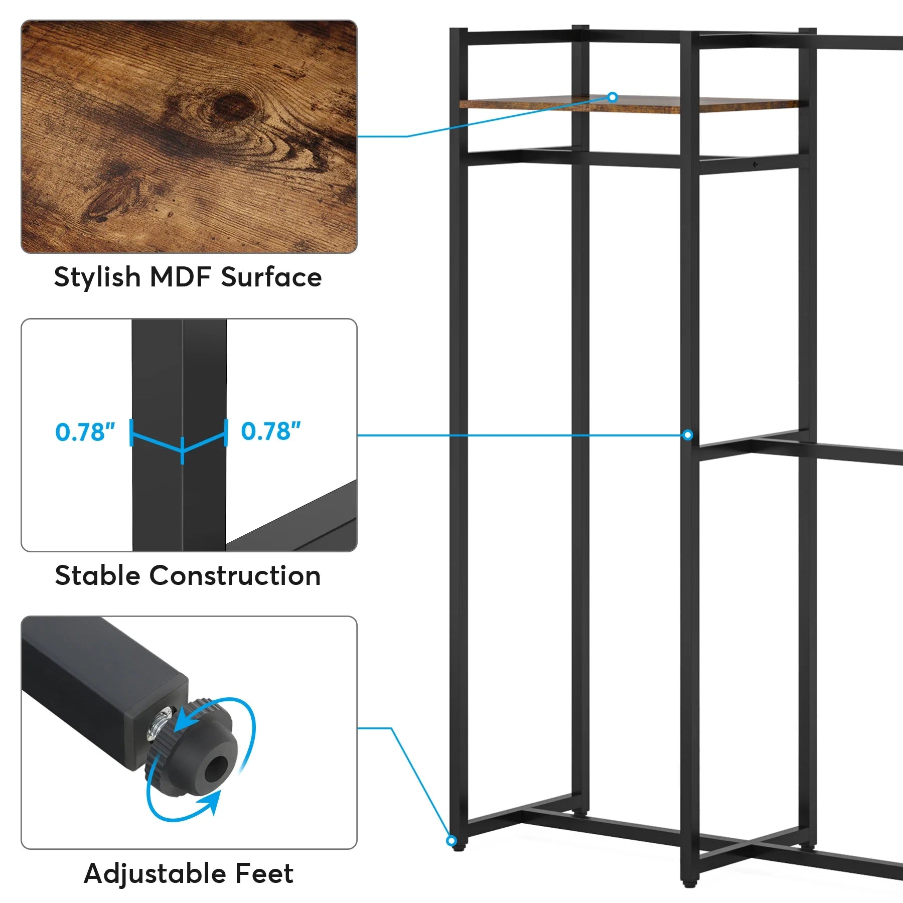 Sturdy and Durable: Heavy duty metal frame combine with rustic thick particle board makes it super stable and sturdy, no wobble and collapse. Easy access in bedroom, cloakroom, clothing store, laundry room, walk-in closet and more.