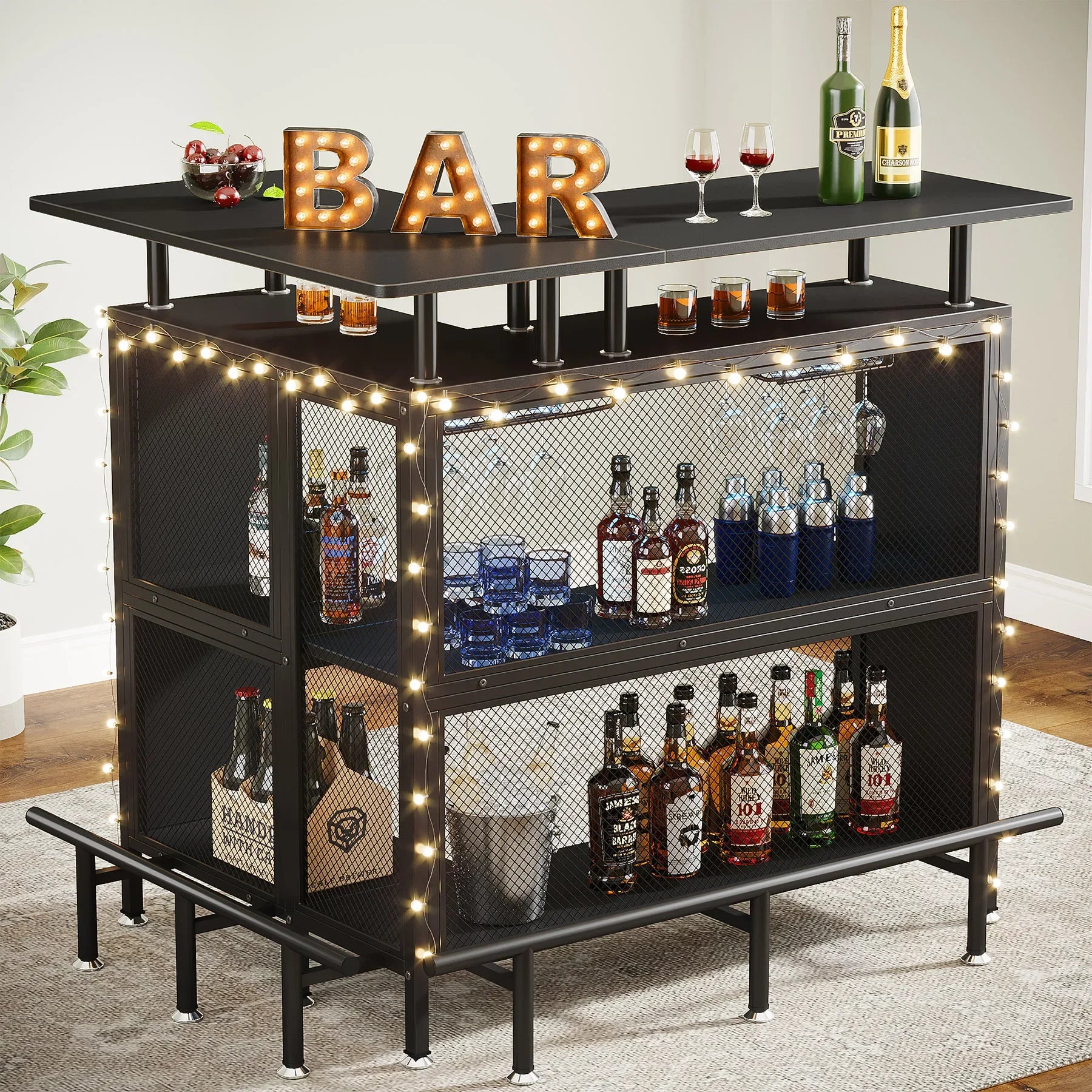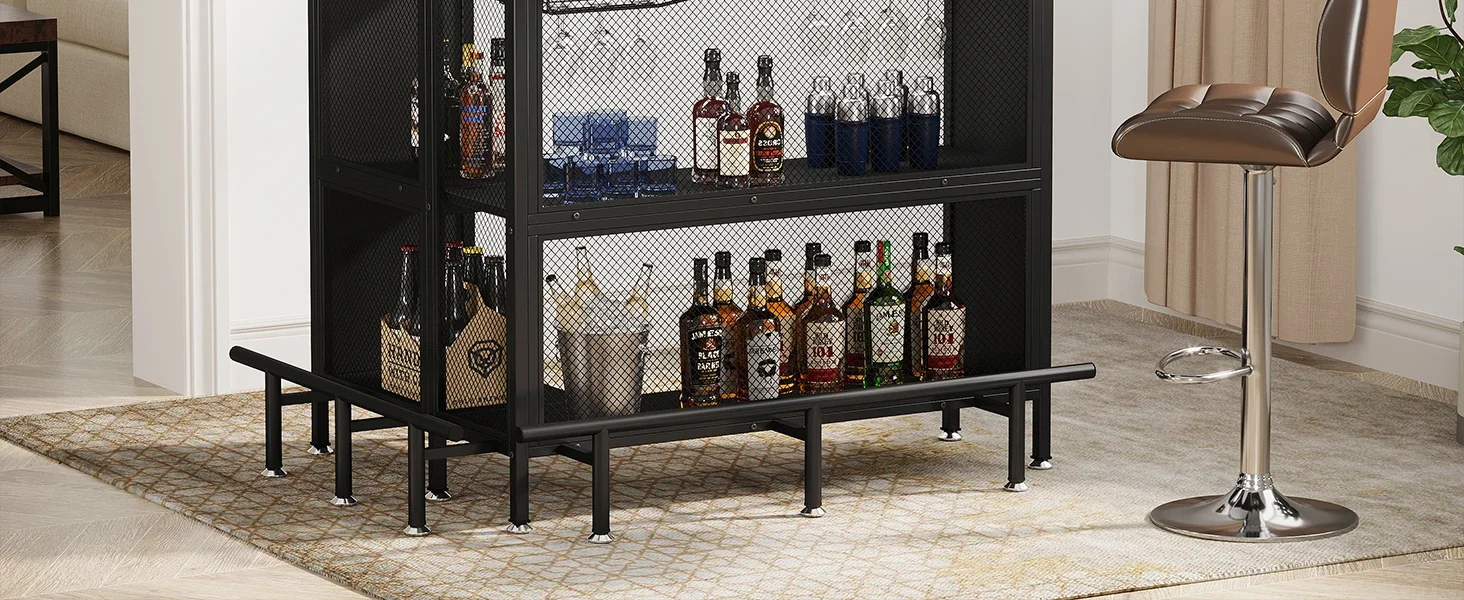 Sturdy and Durable: Crafted from high-quality metal mesh and thick engineered wood, this bar cabinet is built to last. It's sturdy and durable, meaning it will stand up to regular use and hold up over time