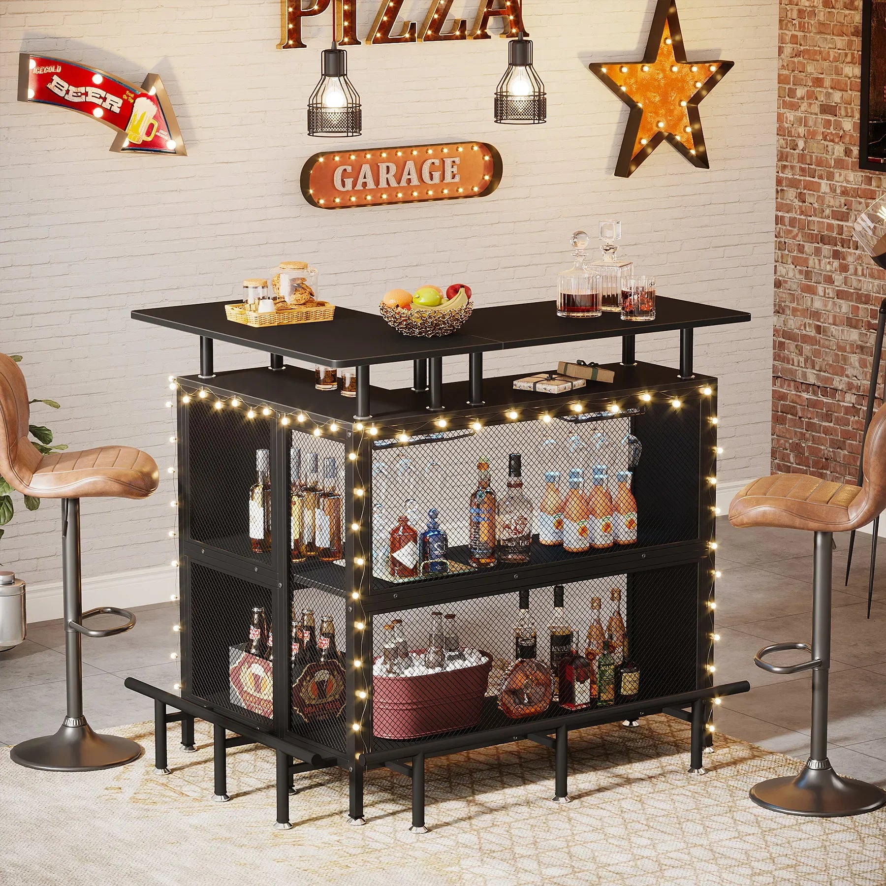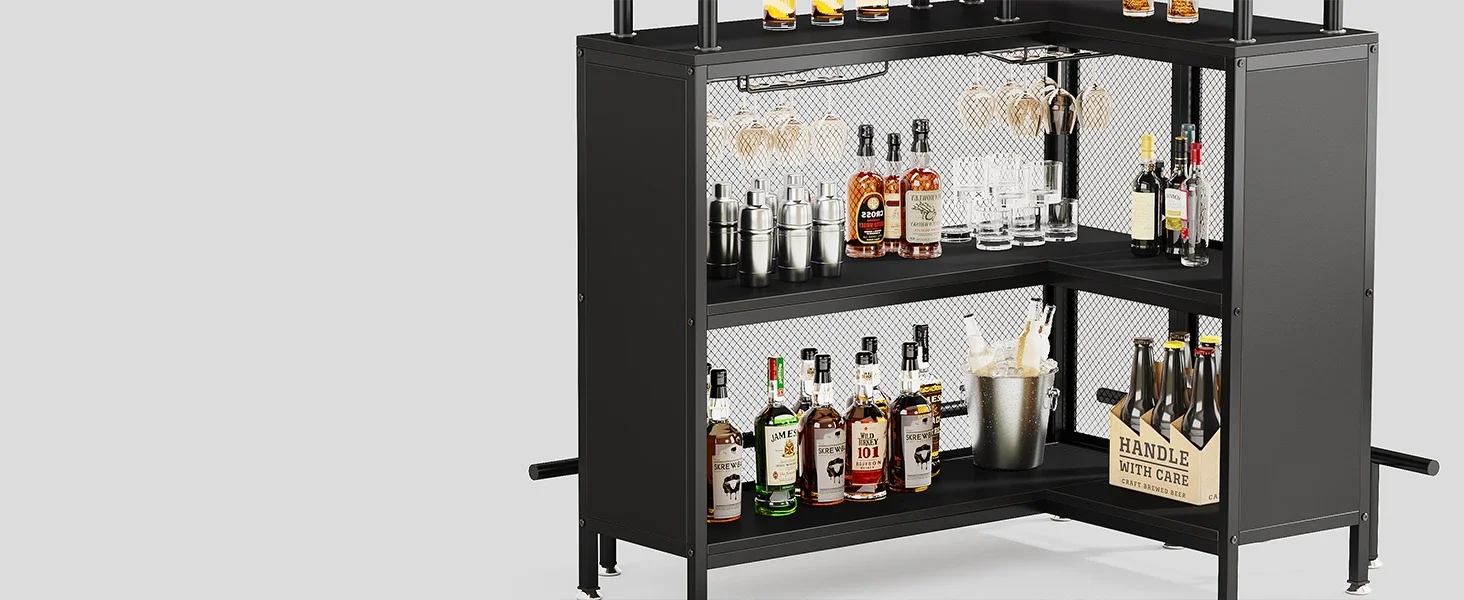 Compact for Small/Limited Space: This L shaped home bar unit is perfect for those with limited space, as its compact design doesn't sacrifice functionality. It won't take up too much floor space, making it a great addition to apartments or any small space
