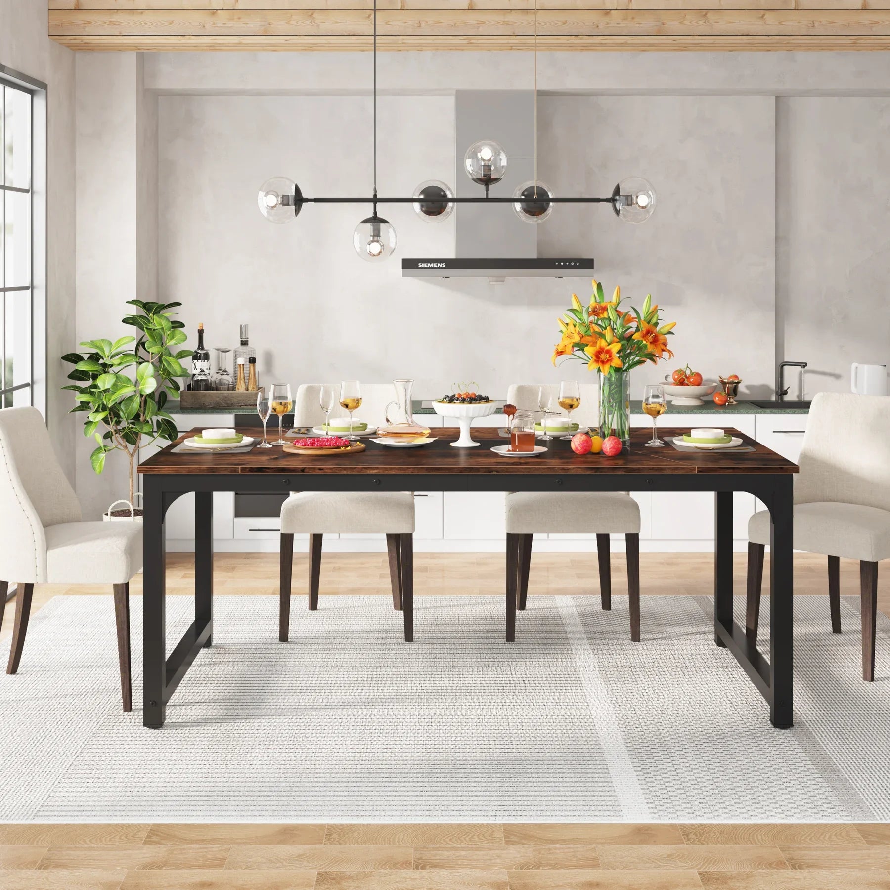 MonoWood Kitchen Modern Industrial Dining Table for 6-8 Person with Metal Frame