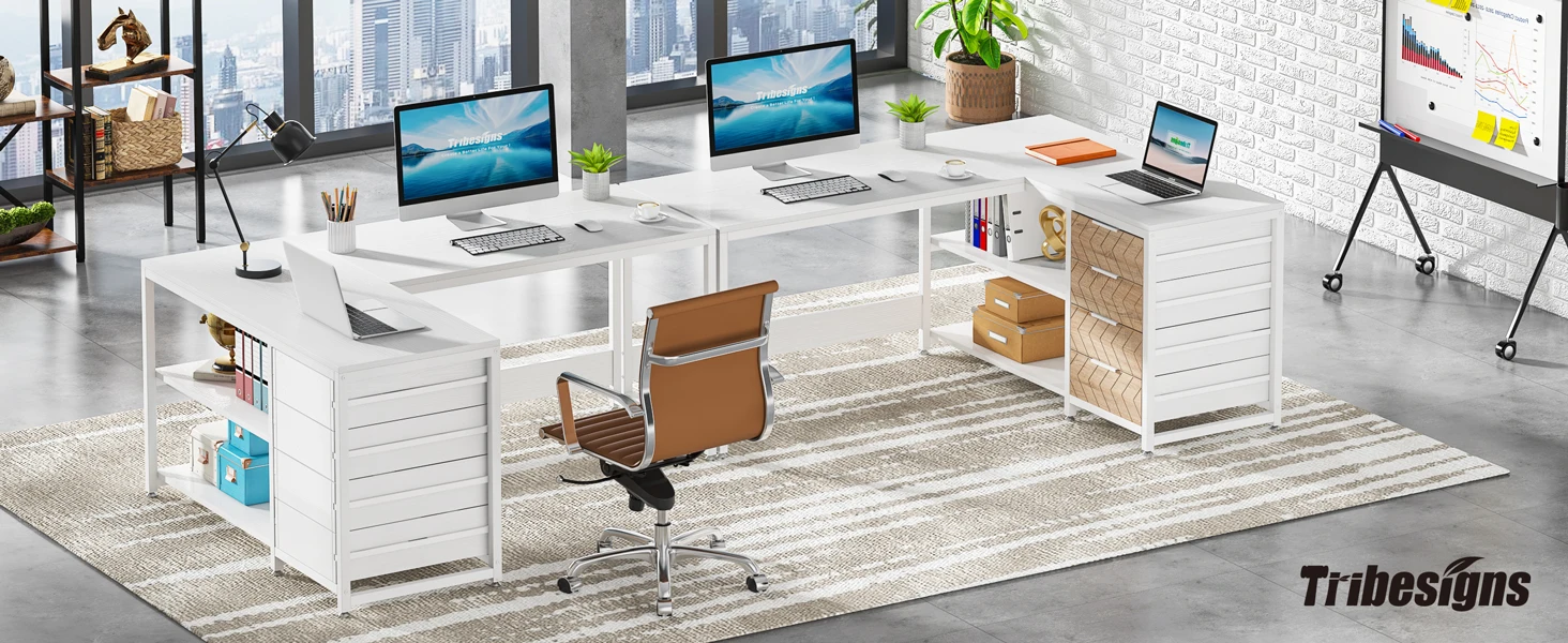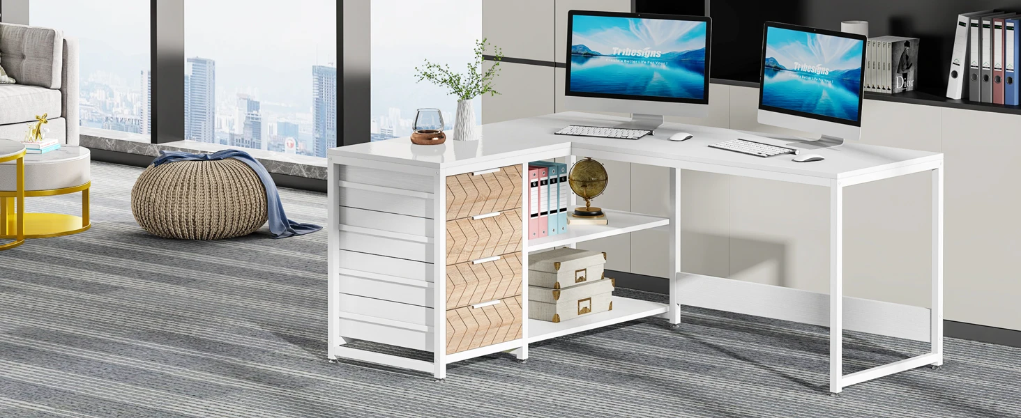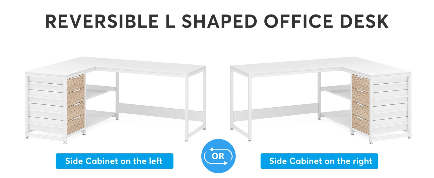Reversible L-shaped Design: Our white desk has two different design of boards, you can install the storage drawers on the left or right according to your needs. it combines desk with storage drawer into one which is convenient to make everything within reach