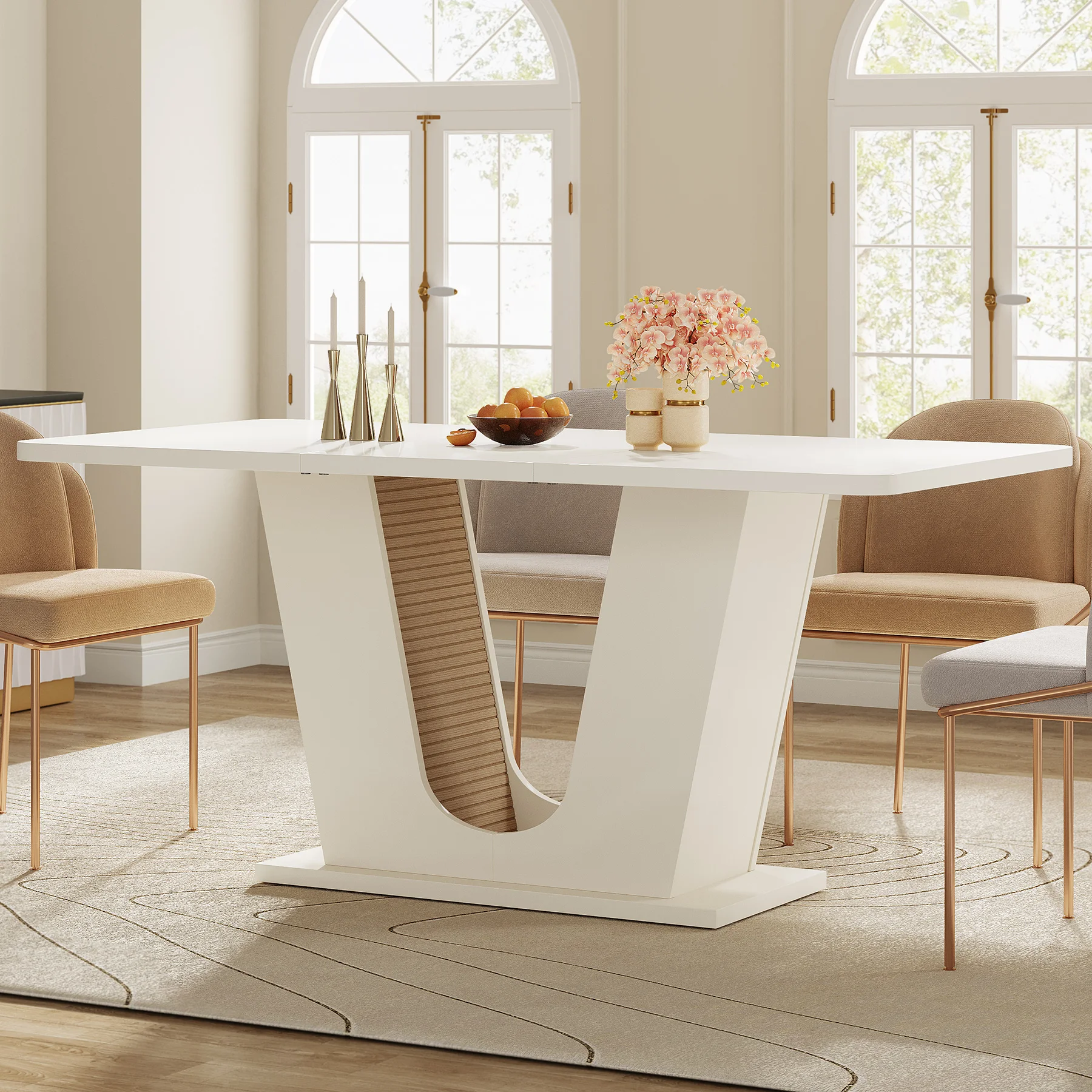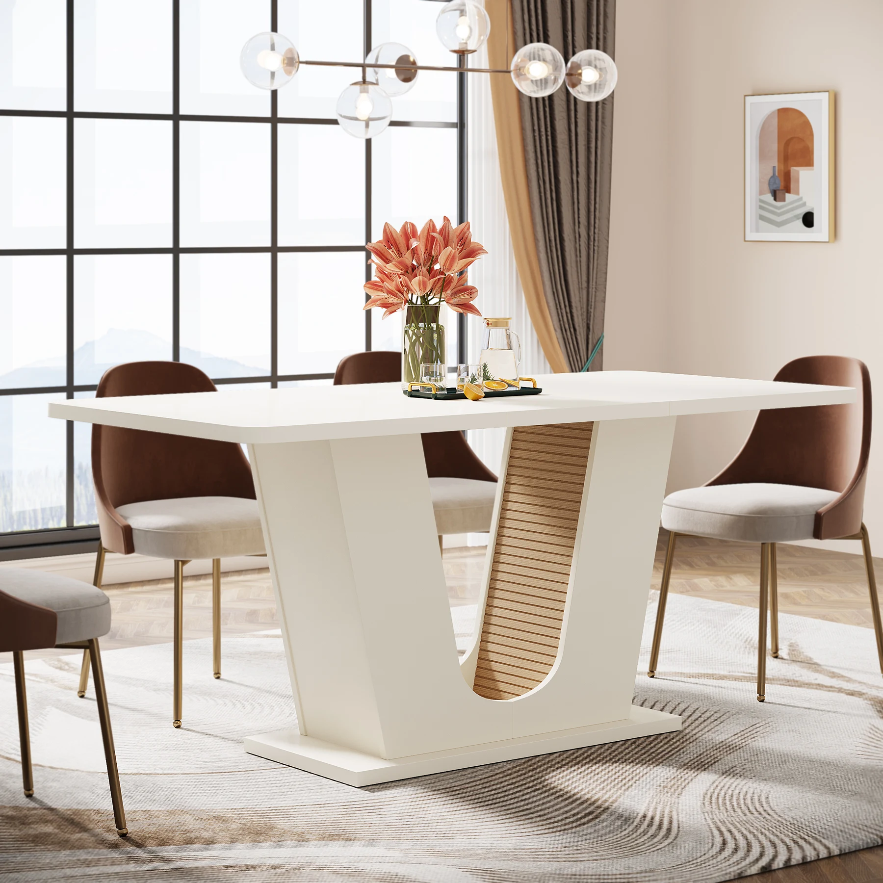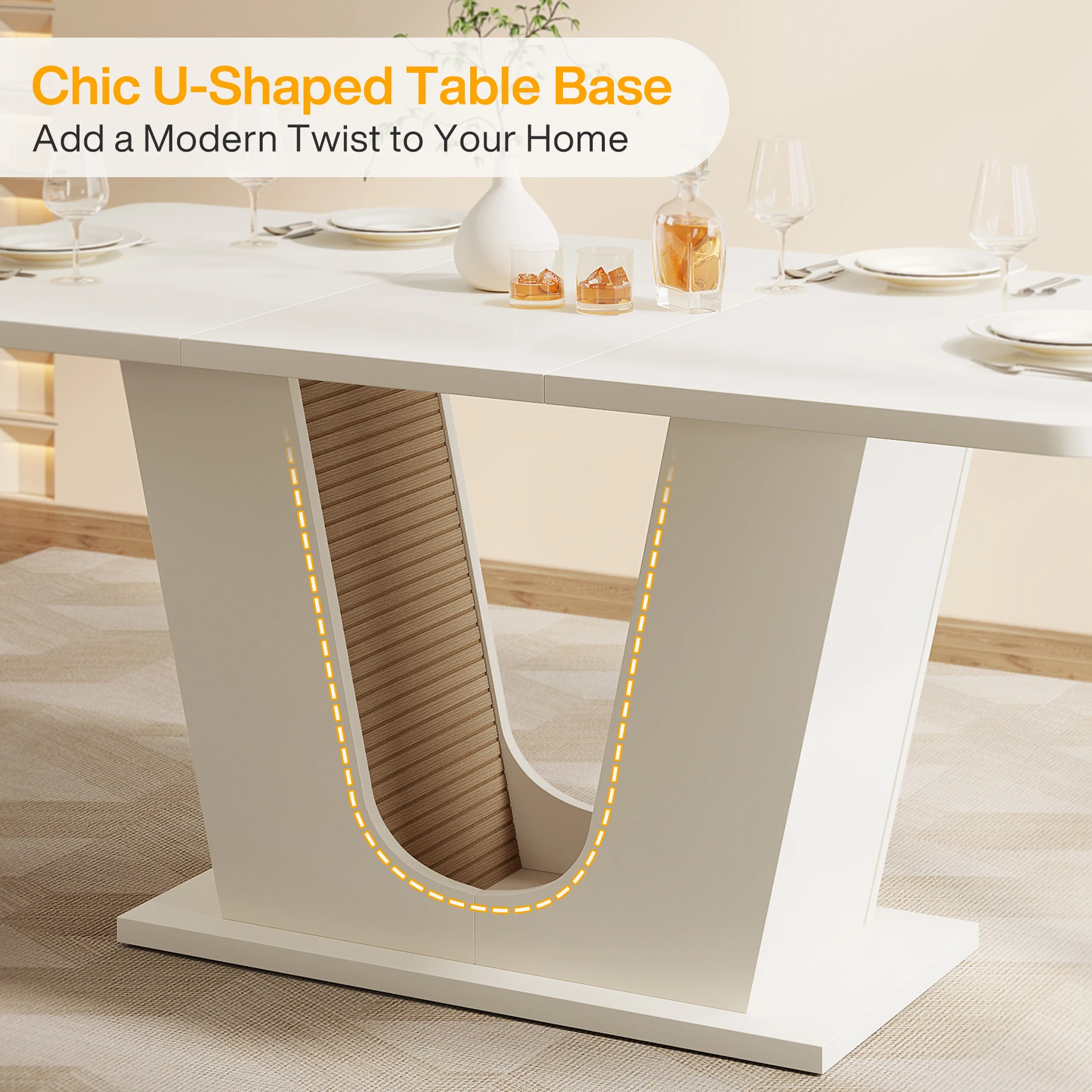 MonoWood Modern Dining Table for 4-6 People, 55-Inch Rectangular Kitchen Table with U-Shaped Base, Dinner Table for Kitchen