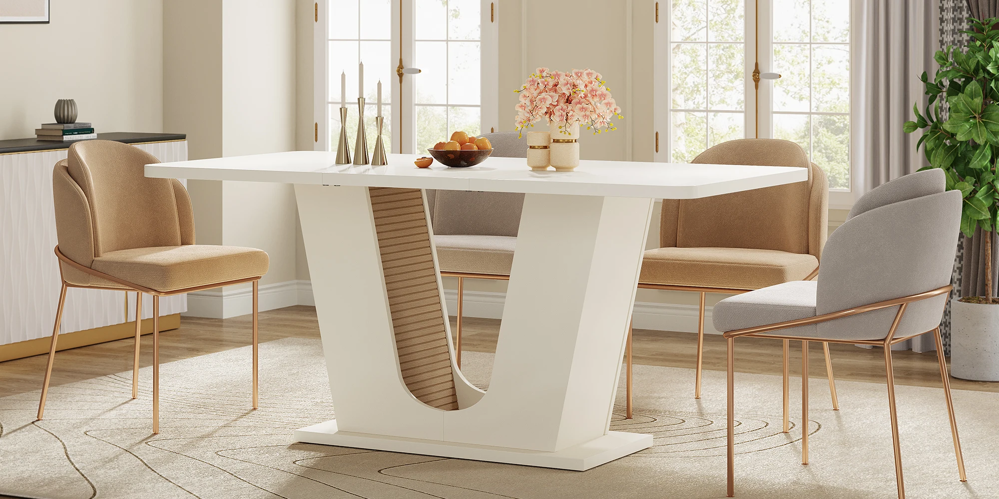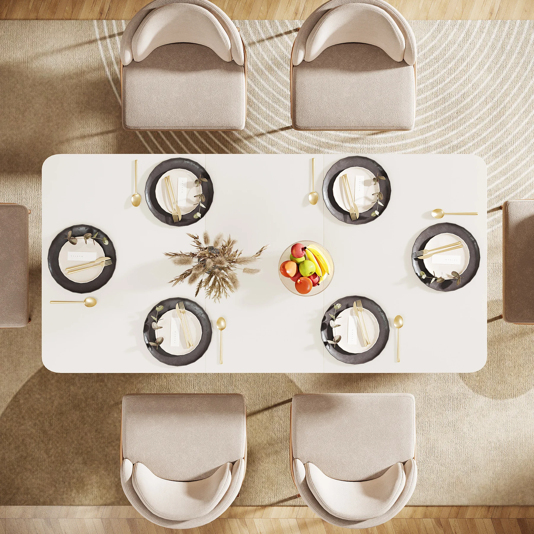 𝐄𝐥𝐞𝐠𝐚𝐧𝐭 𝐌𝐨𝐝𝐞𝐫𝐧 𝐃𝐞𝐬𝐢𝐠𝐧: Elevate your dining atmosphere with the wood dining room table for 4-6 featuring a modern minimalist design. The sleek cream white finish seamlessly blends with your dining area, making it an ideal choice for any home decor style