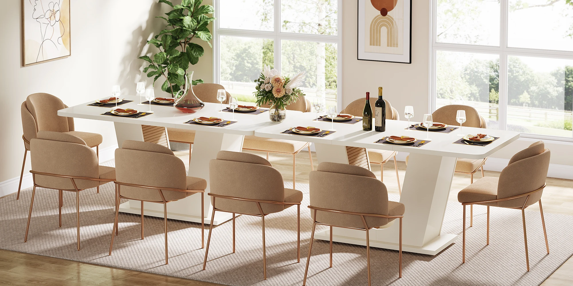 𝐃𝐢𝐬𝐭𝐢𝐧𝐜𝐭𝐢𝐯𝐞 𝐔-𝐒𝐡𝐚𝐩𝐞𝐝 𝐁𝐚𝐬𝐞: The meticulously designed U-shaped base not only efficiently distributes weight, ensures stability and durability, but also adds an extra visual appeal, making the rectangle kitchen table stand out and showcase your taste