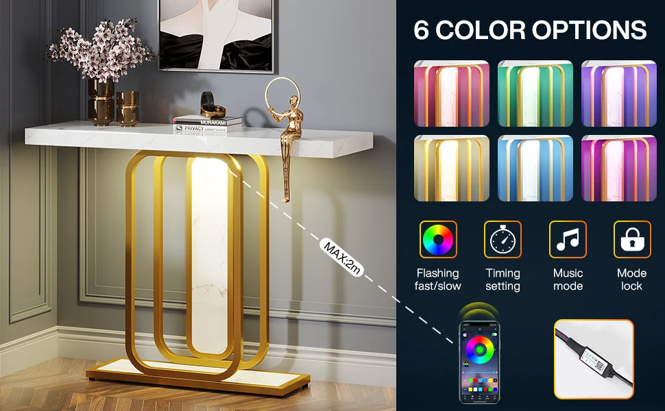 【Eye-catching 6 LED Lights】:The lights( Red, Green,Blue,Yellow Light Blue,Purple ) make this entryway table stand out and add a nice touch to the room, and it will definitely take your display to the new level and create cozy feeling at the same time