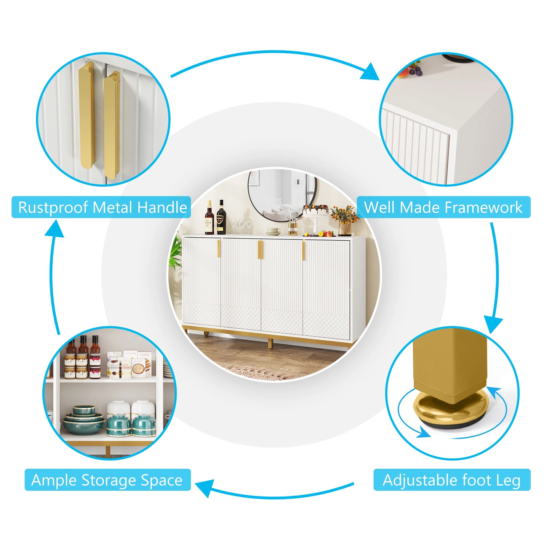 MonoWood Modern Storage Cabinet, 59 Inch Console Cabinet Sideboard Buffet Cabinet with 4 Doors & Gold Metal Base
