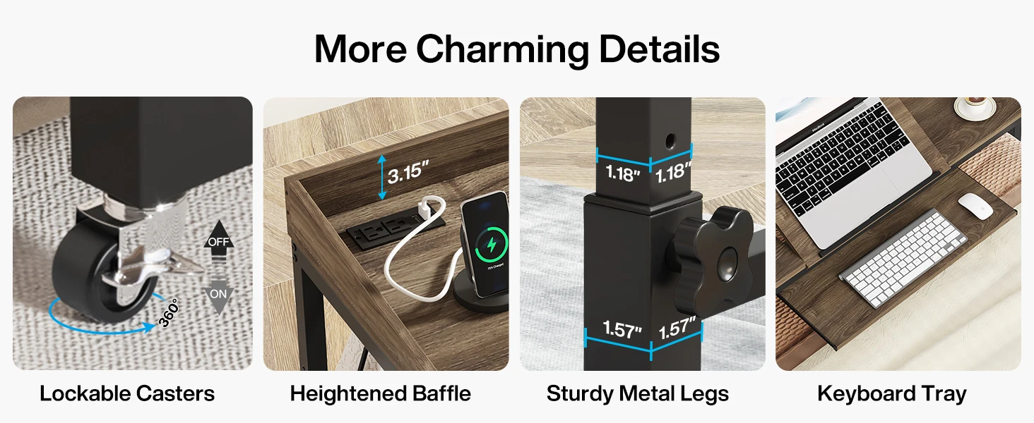 to Queen 60*80 inches. With a generous desktop, it provides ample space