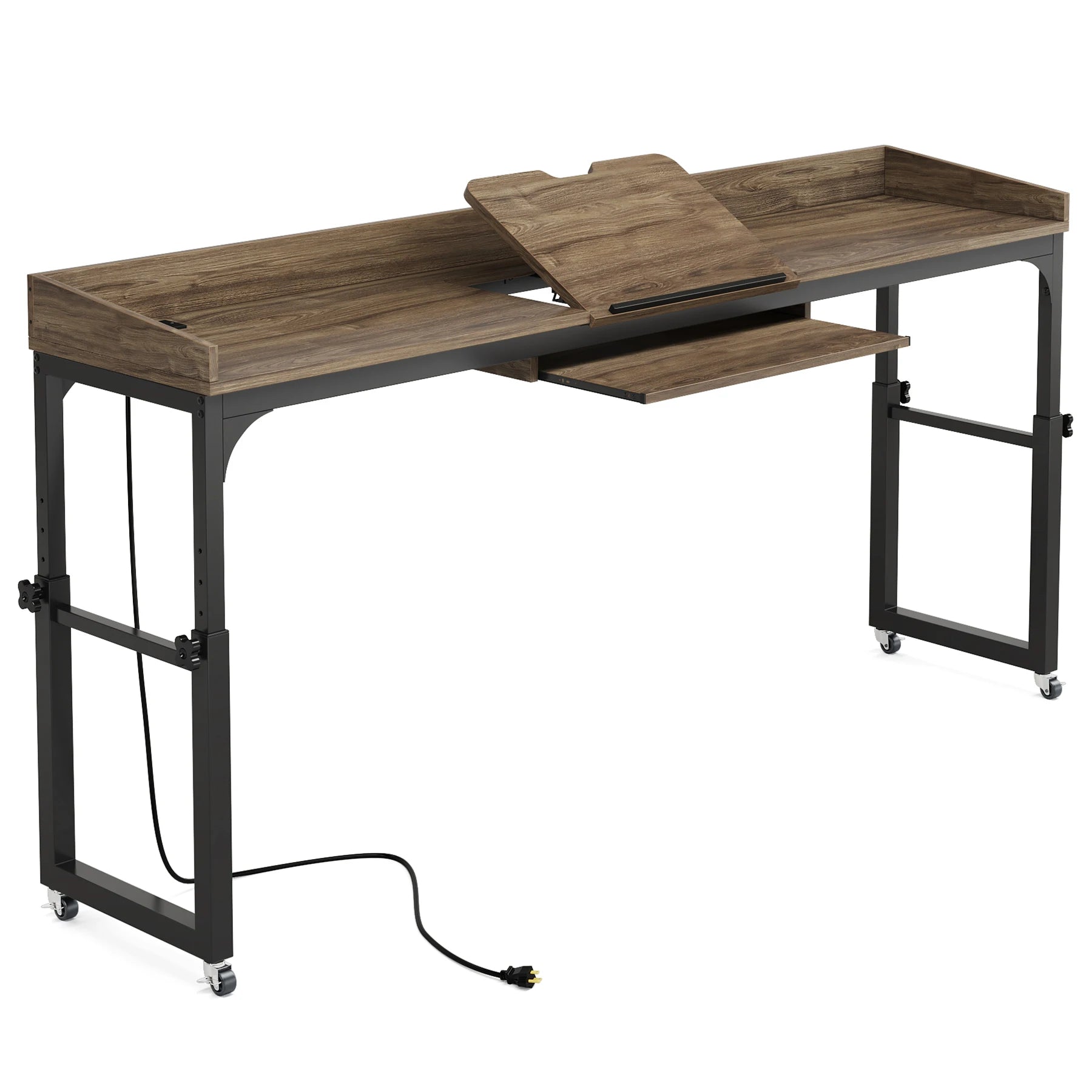 MonoWood Overbed Table with Wheels, Queen Size Over Bed Desk with Adjustable Tilt Stand, Mobile Laptop Cart Computer Desk
