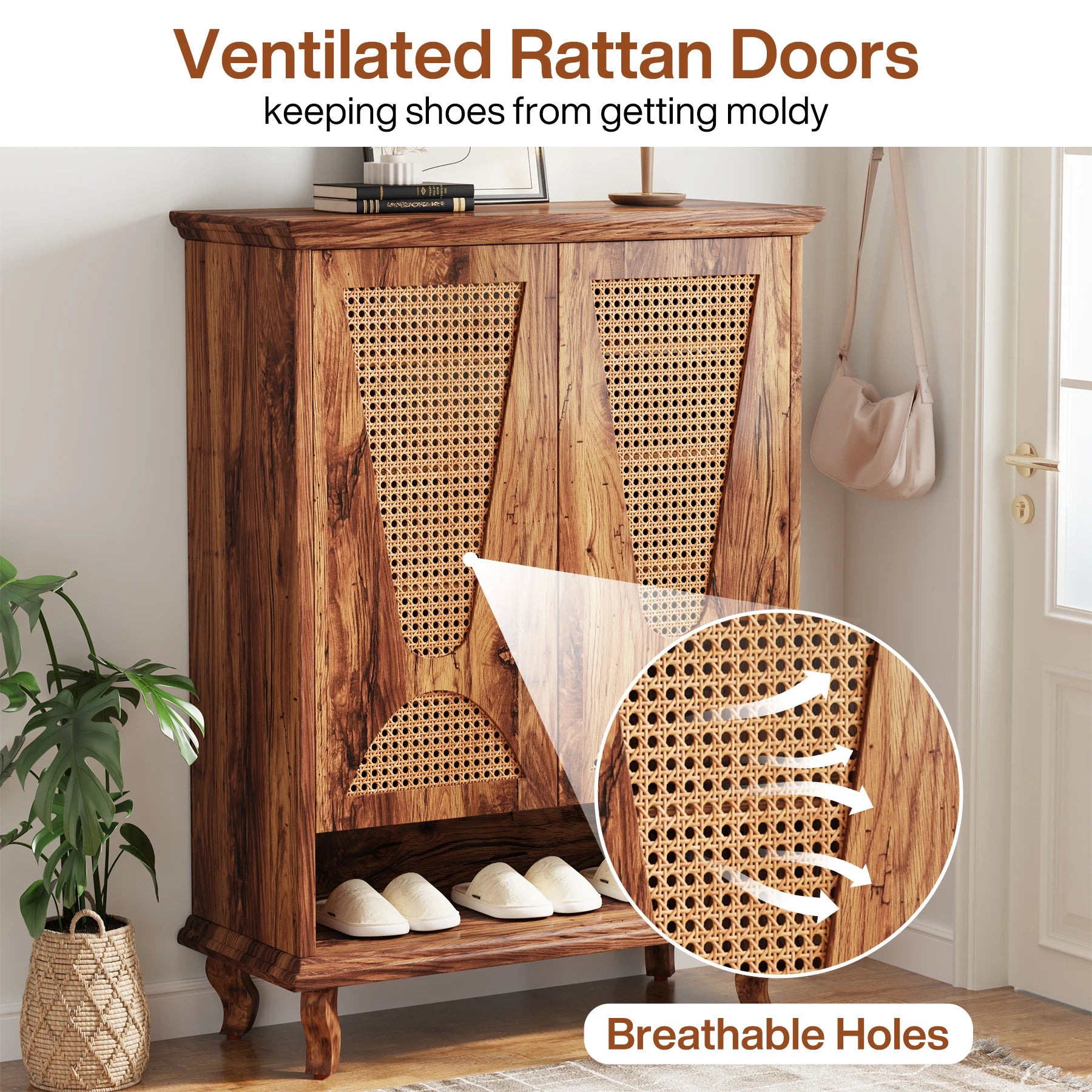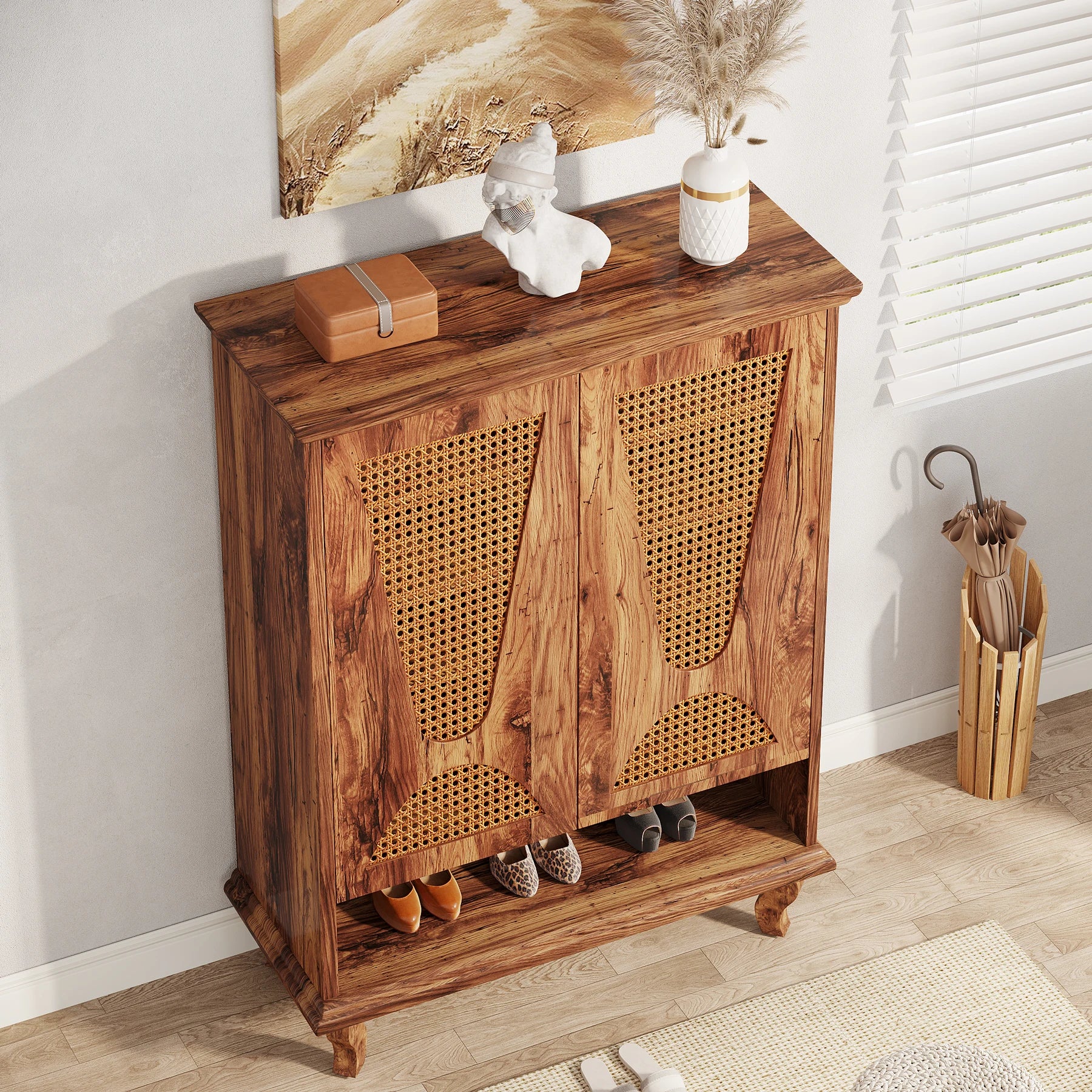 particleboard panels, and rattan doors, this shoe cabinet for the