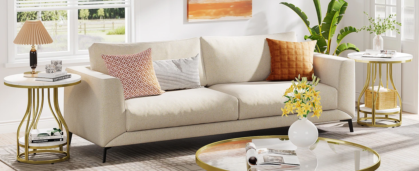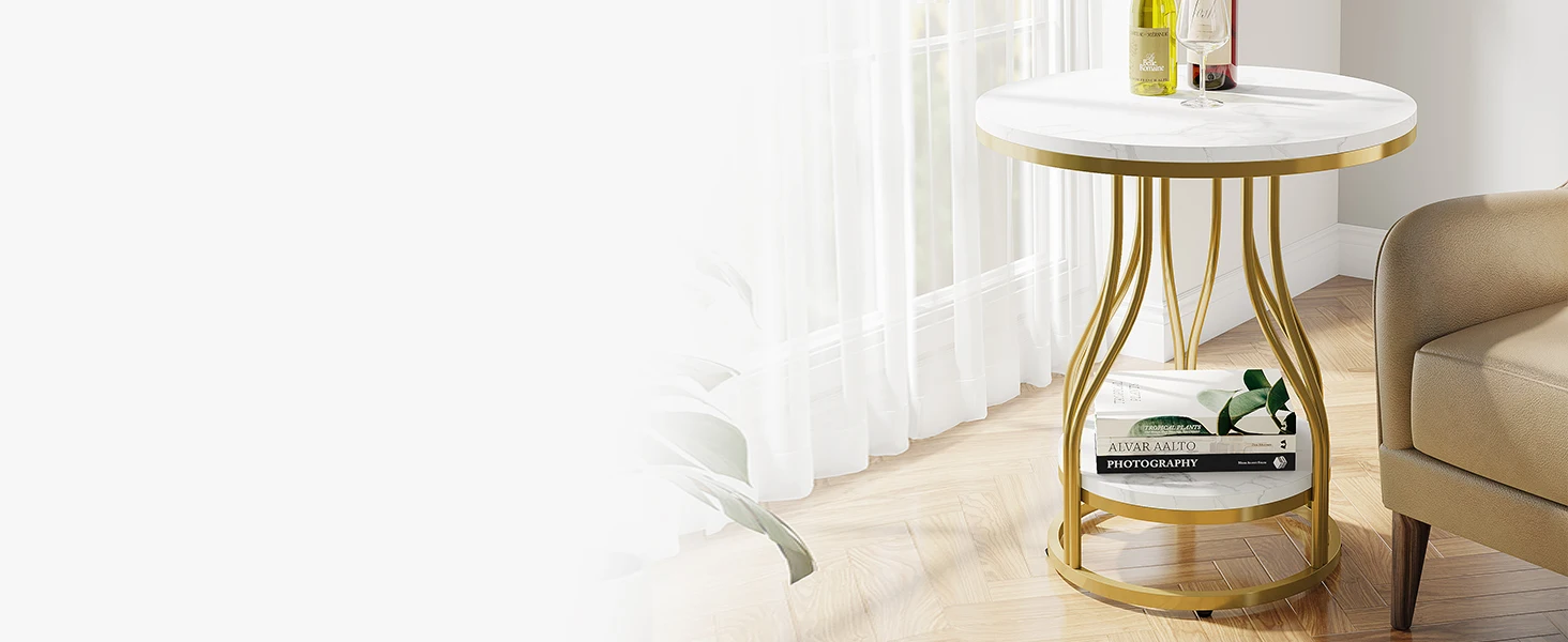 [ Complementary Addition ]- Whether you need a convenient spot to place your coffee or book within arm's reach of your sofa, from cozy reading space to leisure and entertaining, Tribesigns white gold side table can meet your different needs. The spacious tabletop provides ample room for your daily essentials such as a lamp, book, or a cup of coffee