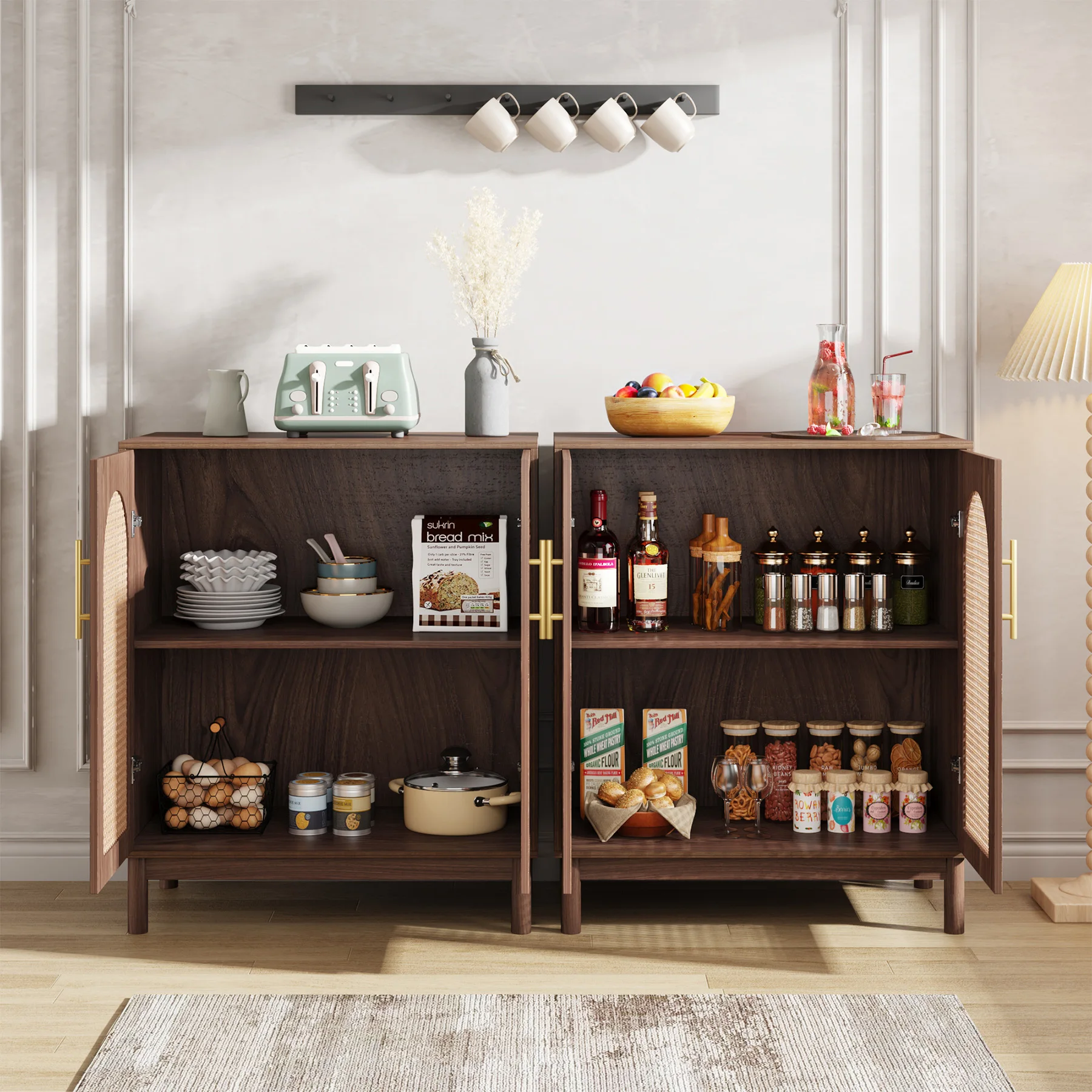 The multifunctional accent storage cabinet not only store your items, also is a nice addition as a home decor, we can use the sideboard buffet as tv console or kitchen pantry storage cabinet.