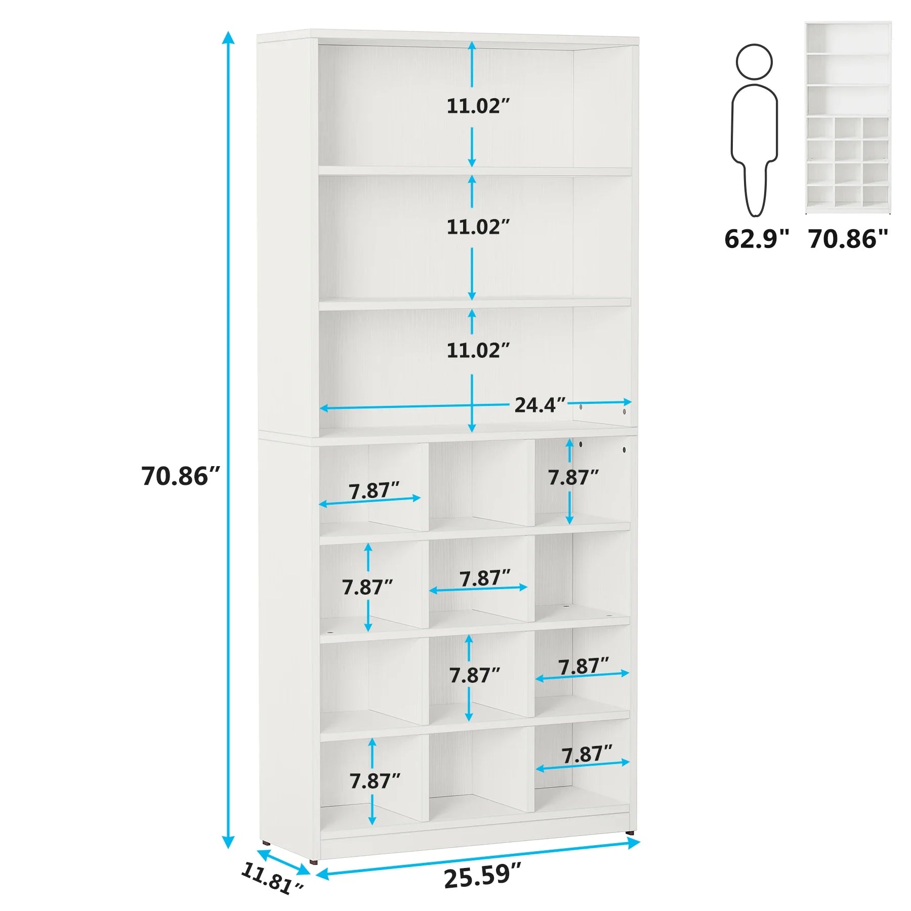 【Upgraded 8 Tier Shoe Rack】Breaking the traditional design, this shoes organizer cabinet combines 4-tier cubby shelves with 3 large open shelves that can store up to 24 pairs of different size shoes from sneakers, sandals, dress shoes, flats to heels, hiking boots, and high boots. This shoe cubby storage can save all your family’s shoes from messy piles, an ideal shoe storage solution for your hallway.