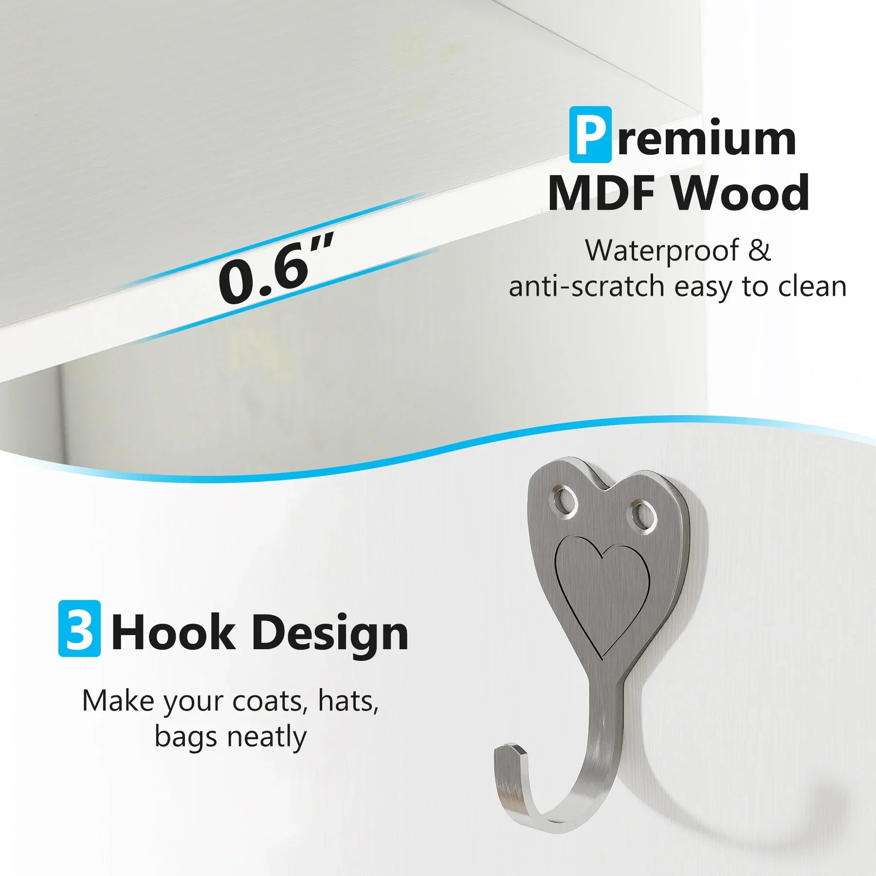 【Strong Functionality】Not only as shoe storage cabinet for hallway, this large shoe rack organizer comes with 3 side hooks to hang your keys, hats, small clutch bag etc. Of course, it's great as a shoe rack for closet, bedroom, cloakroom to store clothes, boxes, scarves, and fashion accessories; Or as a storage shelf for books, vases, and collections in the living room to make your space tidier.