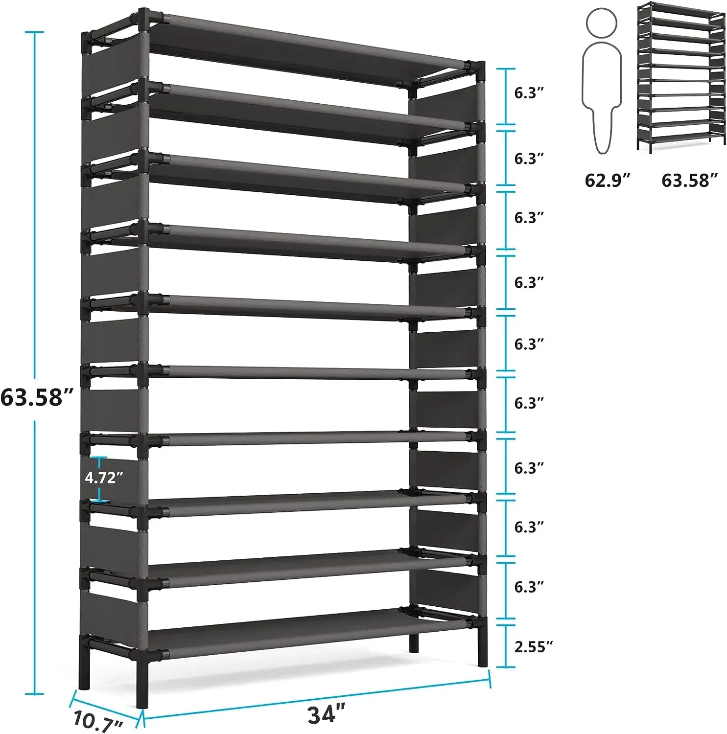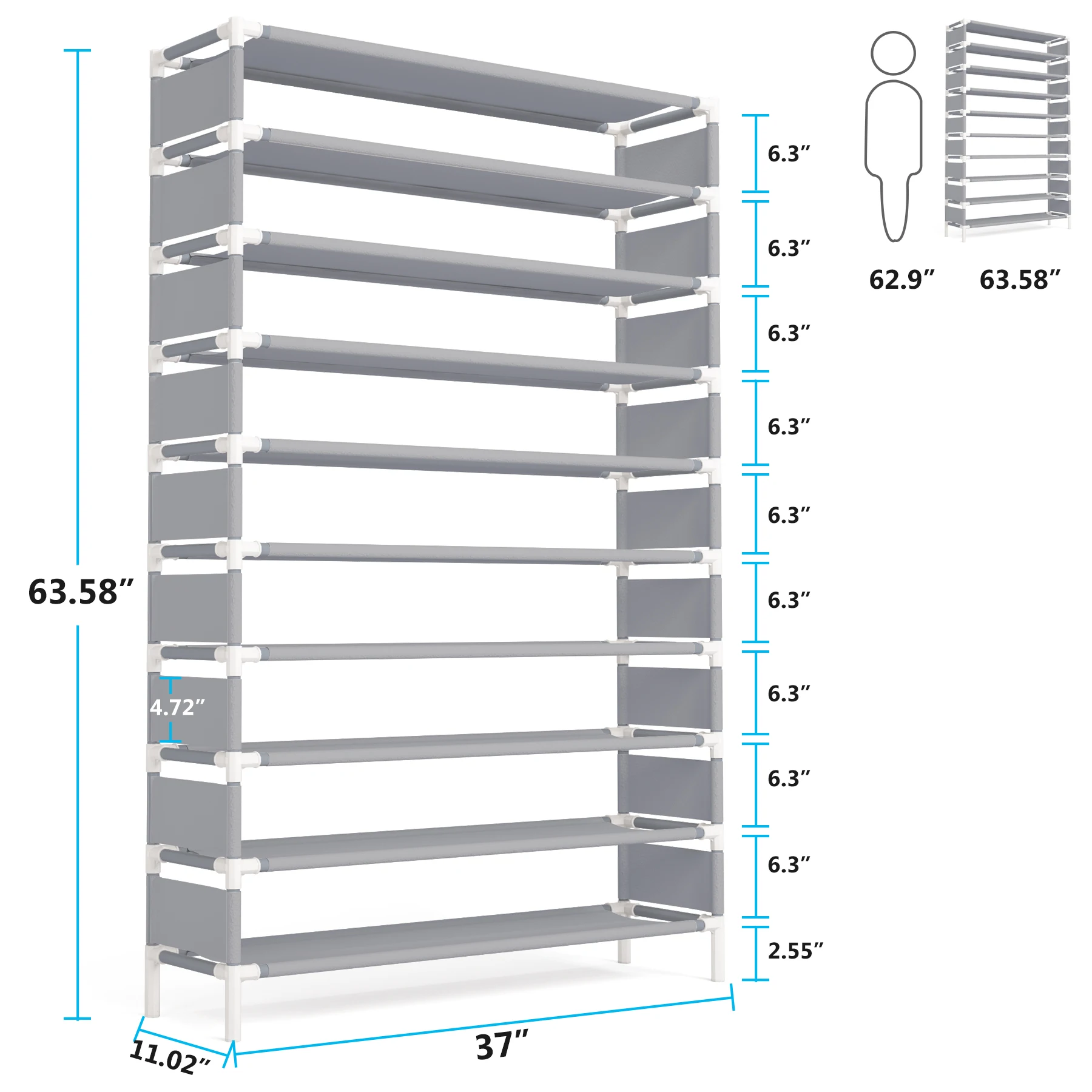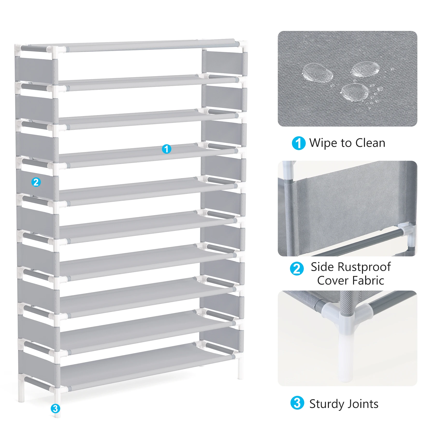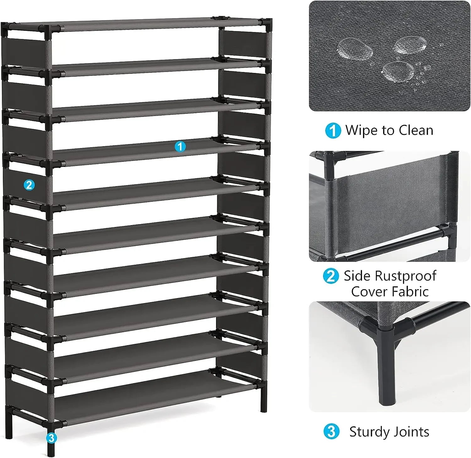 【Holds Up TO 50 Pairs Shoes】With 10 ties of shelving that can conveniently hold all your family’s shoes, sneakers, boots, high heels or flats,it can hold up to 50 pairs of shoes. Say goodbye to the mess and keep your room well organized from now on.
