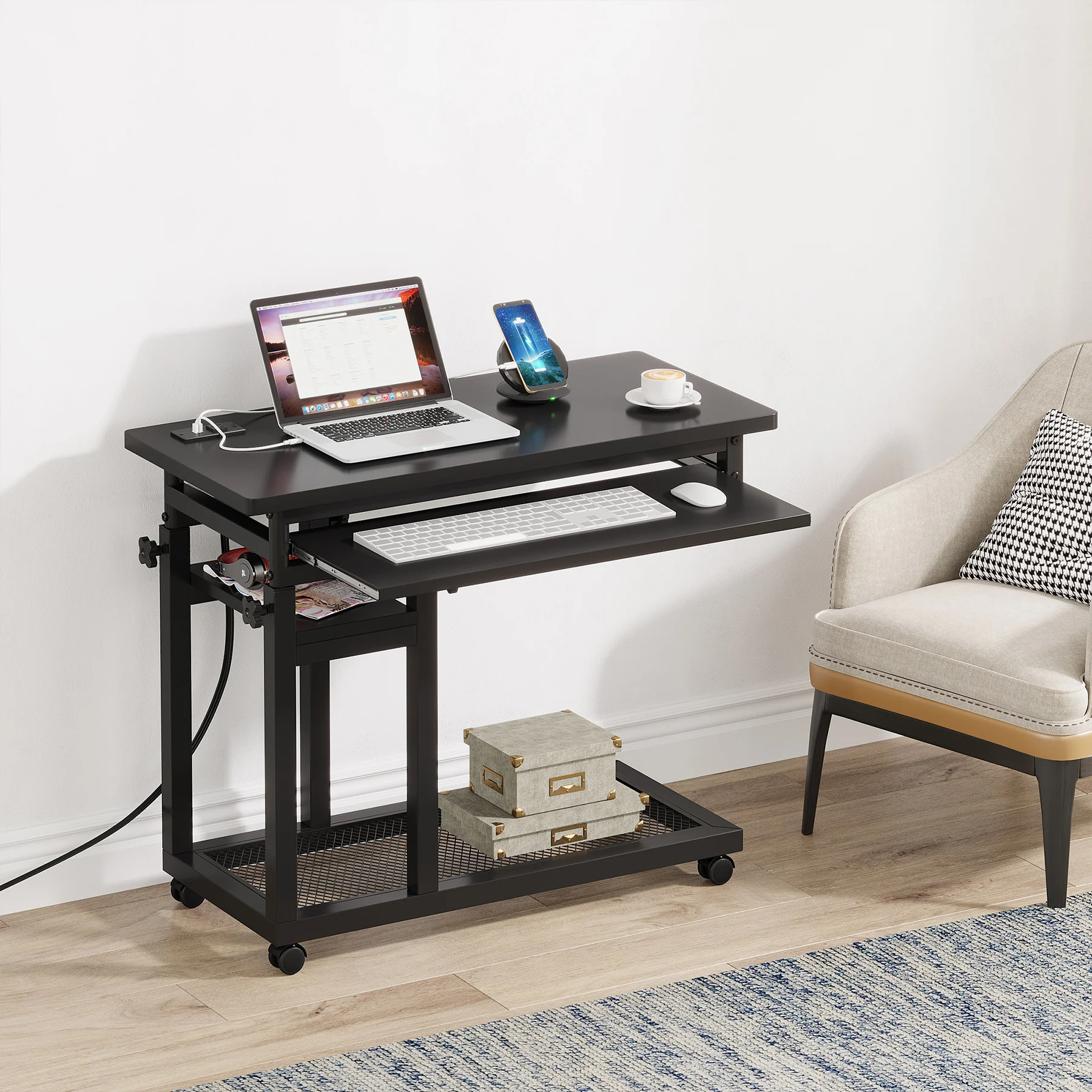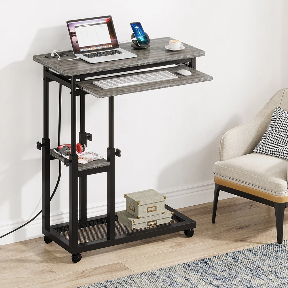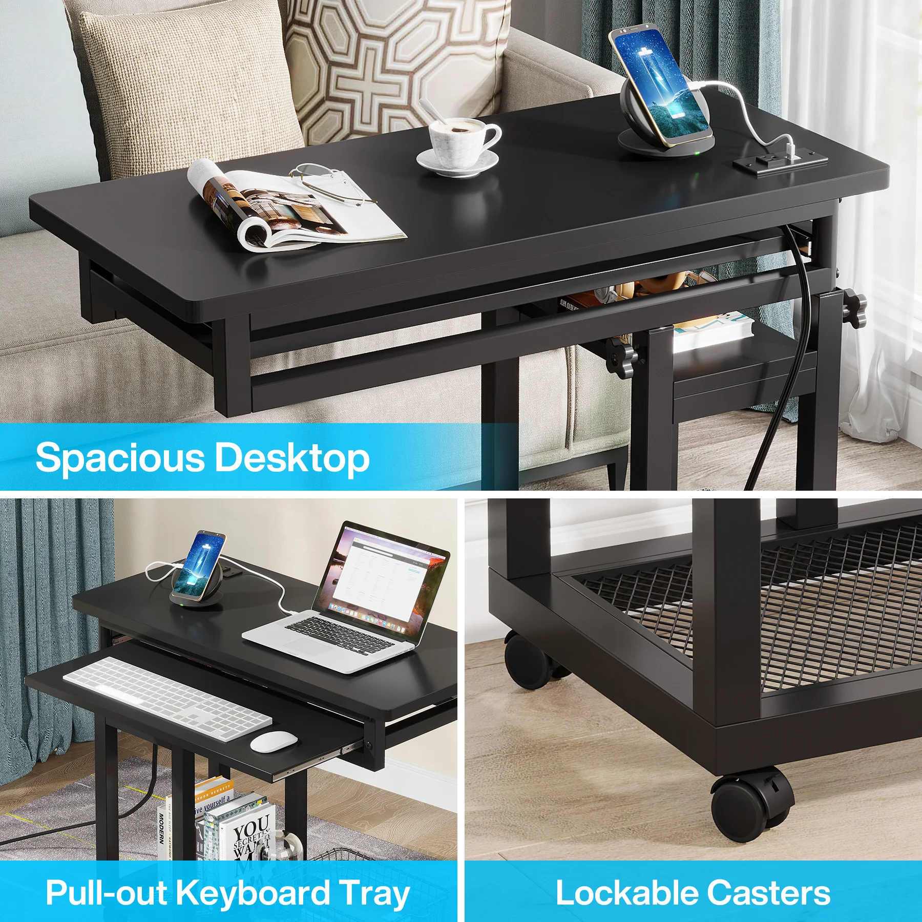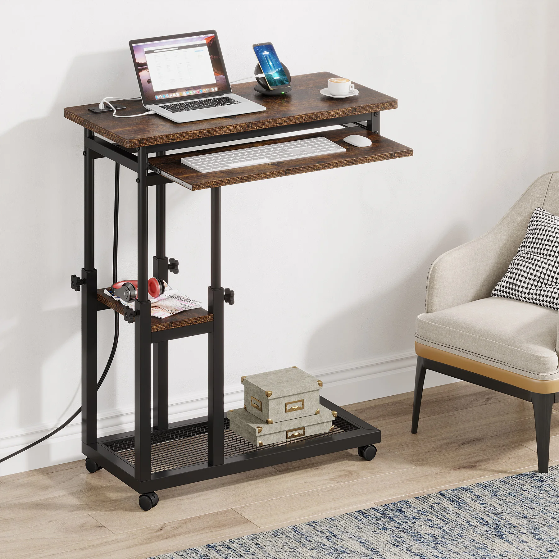 MonoWood Small Portable Desk with Power Outlet, Height Adjustable Sofa Couch Bedside Laptop Table with Wheels