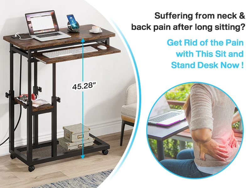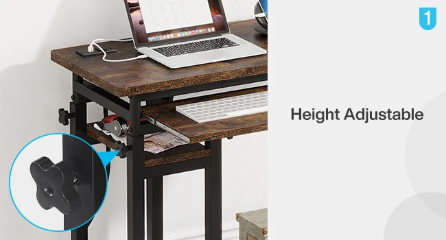 【Height Adjustable for Multitude of Uses】: 30”~49” height range for changing between sitting to standing. Whether you are looking for a compact computer desk for small space, teen student’s room, college dorm, or high standing desk for your home office , a snack tray/sofa side table for watching TV, a laptop or tablet stand for relaxing in bed, this adjustable rolling table fits the bills well