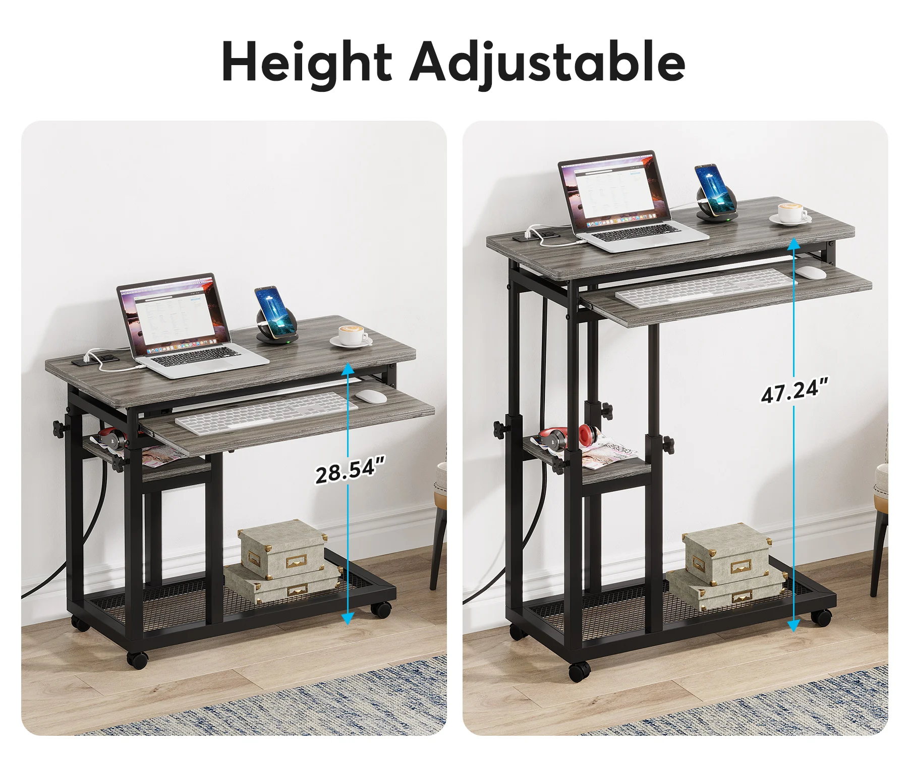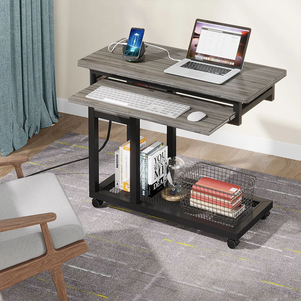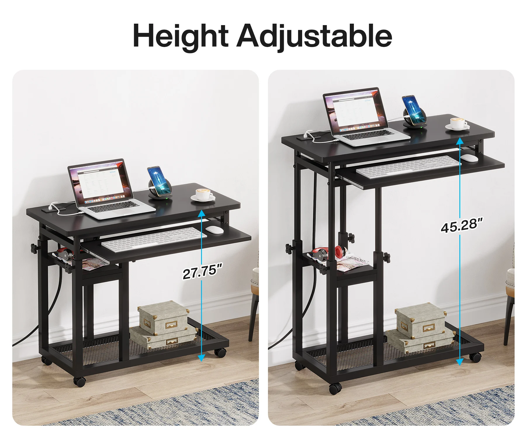 【Rolling Desk with Sliding Keyboard Tray】: The pull out keyboard tray runs on a smooth metal rail, easy to slide in and out and aligns flush with the desk completely when not in use, leaving you with spacious desktop for your laptop or monitor