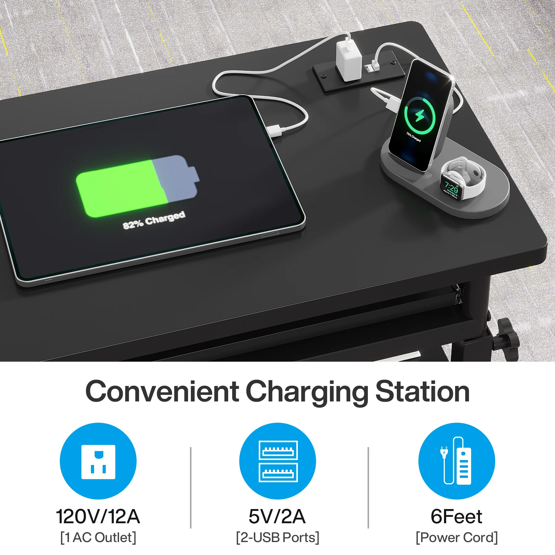 【Sturdy & Stable Construction, Buy with Confidence】: Constructed of 0.6” thick particle board with sturdy metal frame to ensure large weight capacity and durability. The rolling desk can remains stable and lock in place with lockable casters. (We provide 18 months quality assurance and friendly customer service for All products)