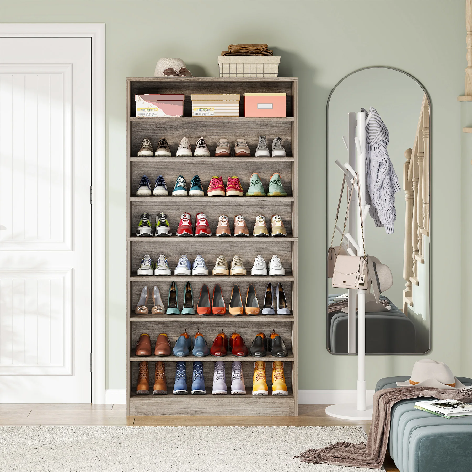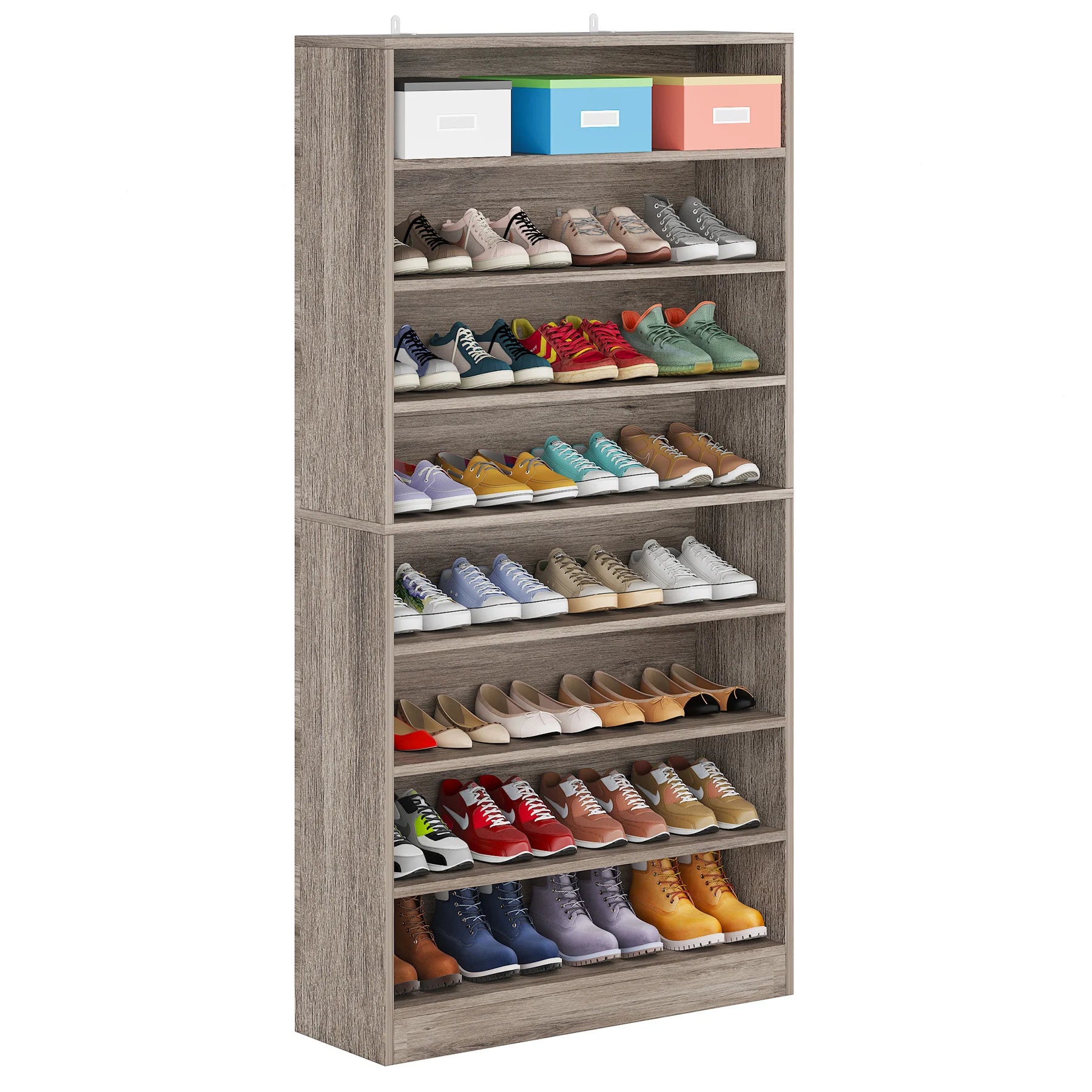 [Complete Your Shoe Collection] Tribesigns grey shoe cabinet with quite strong storage capacity easily help you get rid of shoes clutter. This wood shoe cabinet with 8 tiers hold 32-35 pairs adult shoes or 40-45 kids shoes. It can be also used to visually display your shoe boxes collection or pairs of limited edition shoes. You can buy two to place them together and get more storage as well.