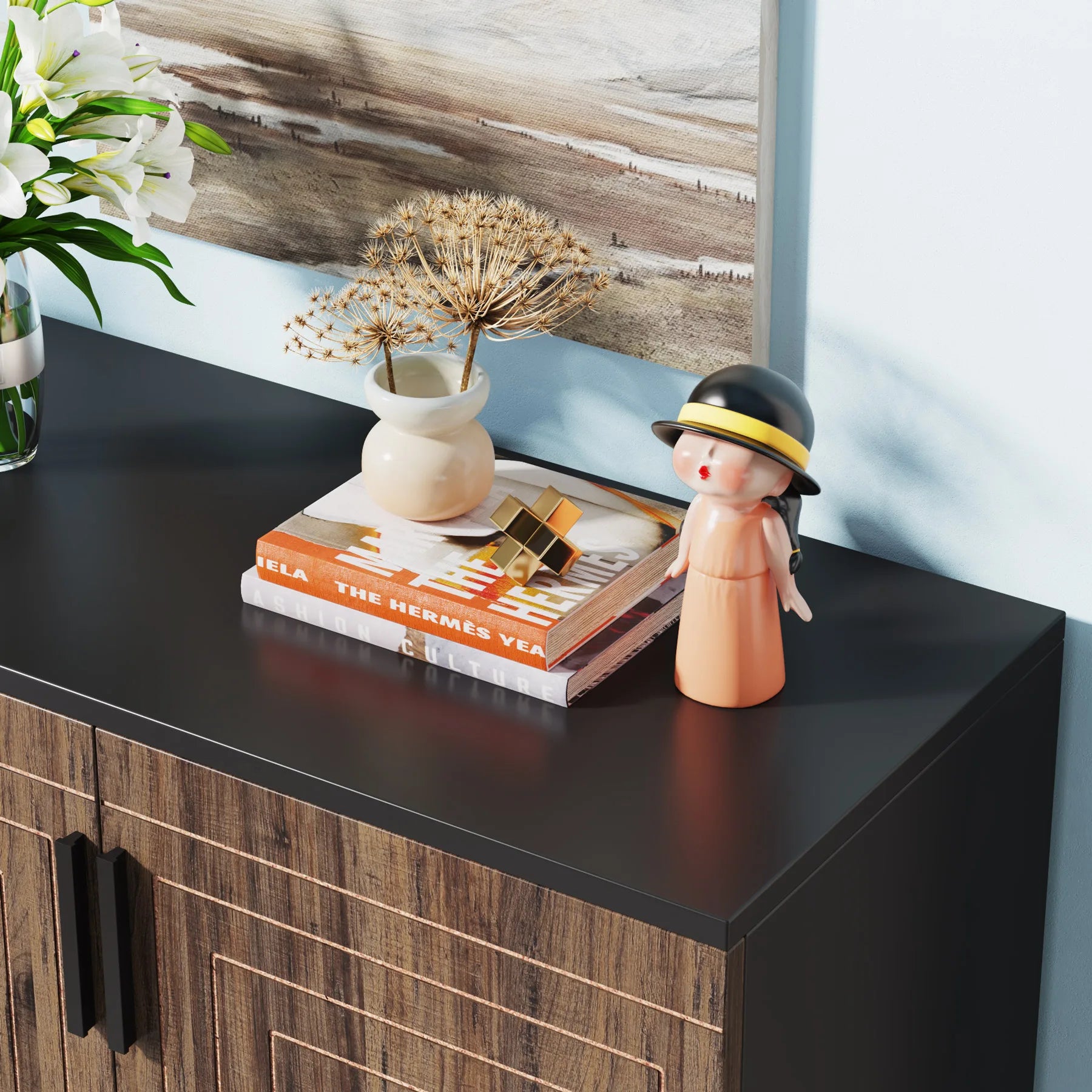 【SHOE ORGANIZER MASTER】Our shoe cabinet with two doors conceals 5 shelves with storage space for up to 24 pairs of shoes. Adjustable interior shelves can be removed for easy storing of heels, mid-boots, and more. And a wide tabletop for storing keys, wallets, and other daily items. 4.9" high bottom space can keep adding pairs of shoes and allows the sweeping robot easy to clean.