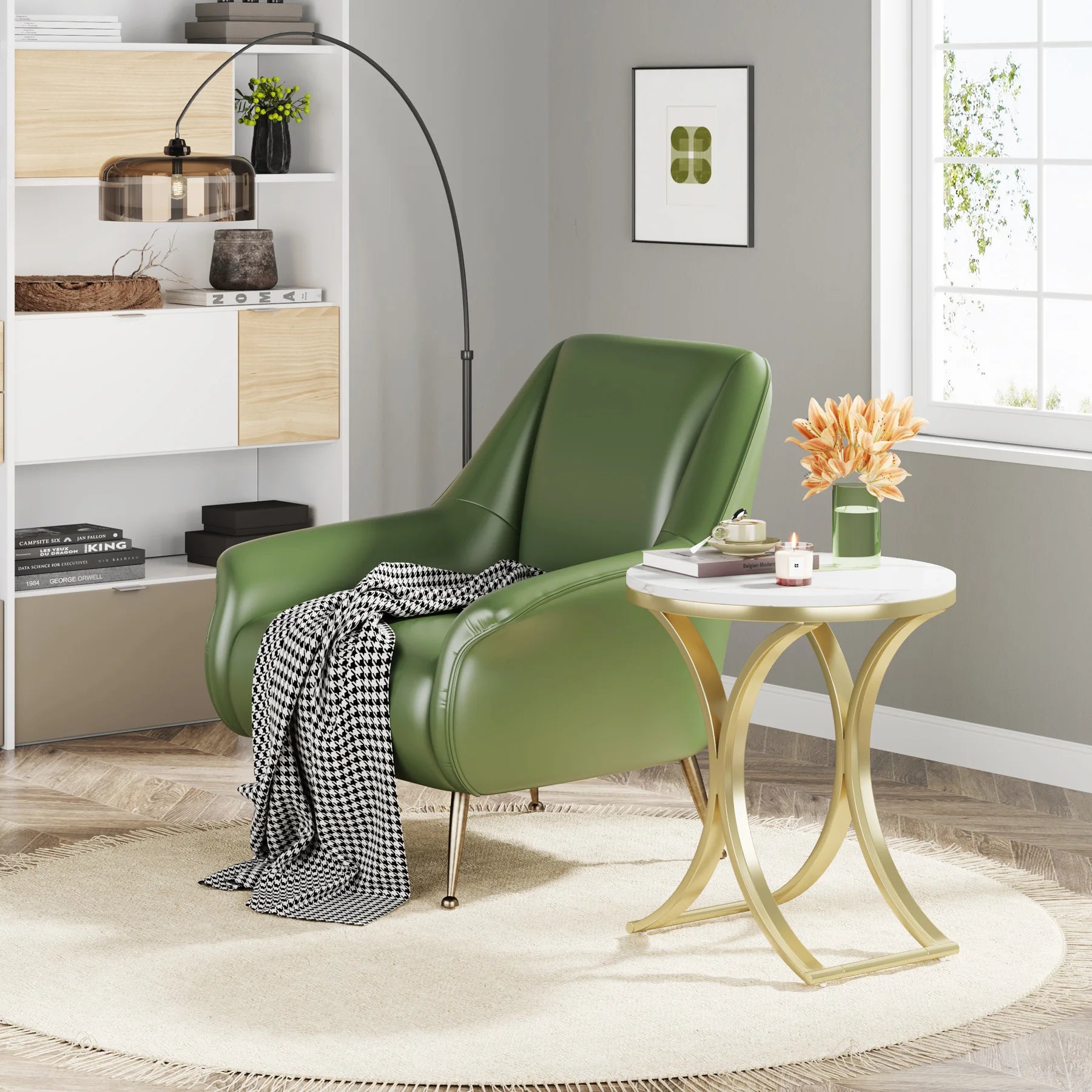 🏠[ Round End Table ] -Simple yet tasteful. Clean lines, faux marble textures, and geometric stylish gold metal C legs make up a contemporary luxurious theme. A beautifully simple side table compact enough to fit small or tight spaces and provides a unique modern touch