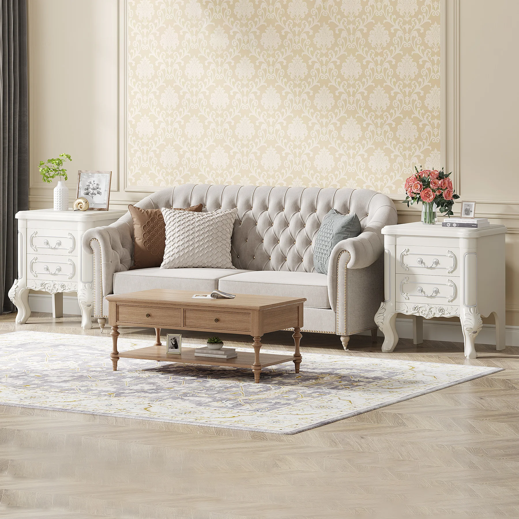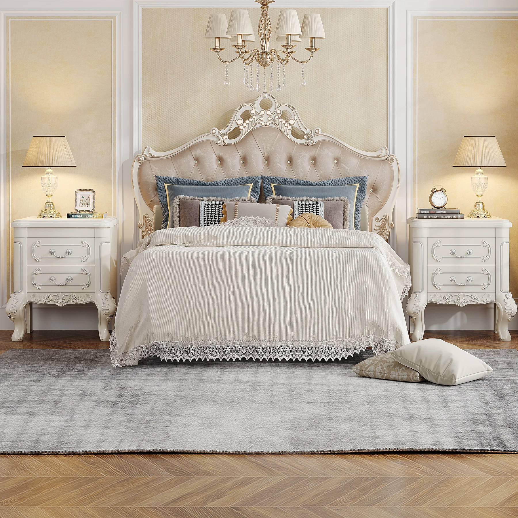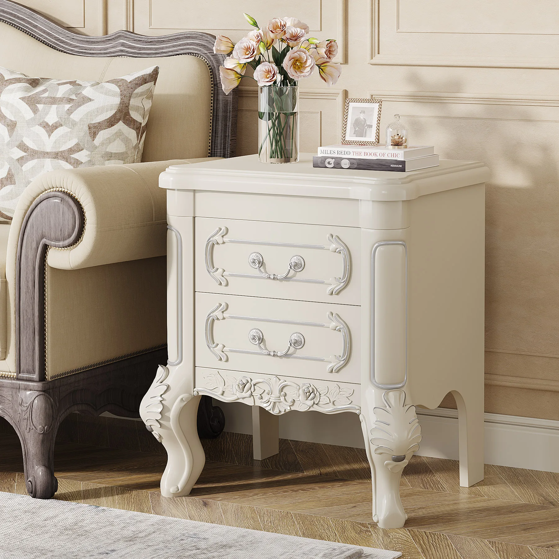 【Exquisite Carved Craftsmanship】: The meticulous craftsmanship of the intricately carved patterns on this bedside cabinet showcases the dedication to detail and quality. Besides,to enhance the overall refinement, we have meticulously hand-painted silver edges on the cabinet, elevating the luxurious look of the entire bedside cabinet.