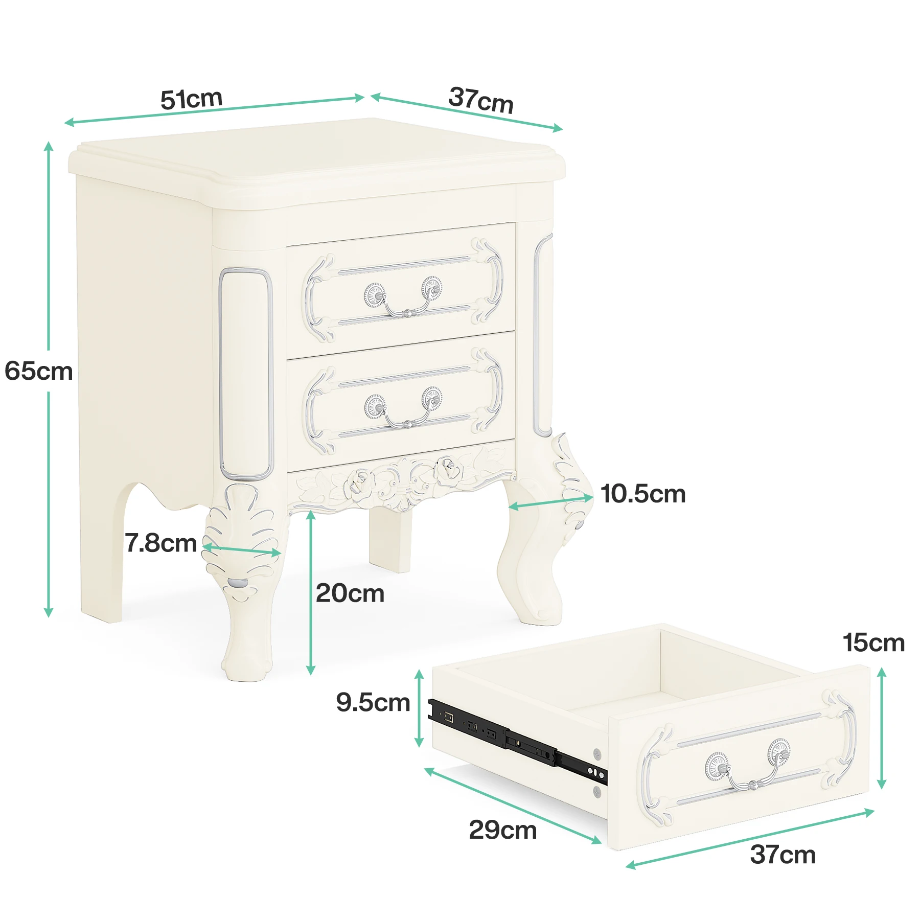 【Classical White Nightstand with Storage】: The fusion of a gentle cream-white finish and intricately carved wooden patterns adds an air of elegance and classical charm to this bedside cabinet. This bedside cabinet doubles as an end table/sofa side table/chairside table, the perfect choice for living rooms, bedrooms, and guest rooms