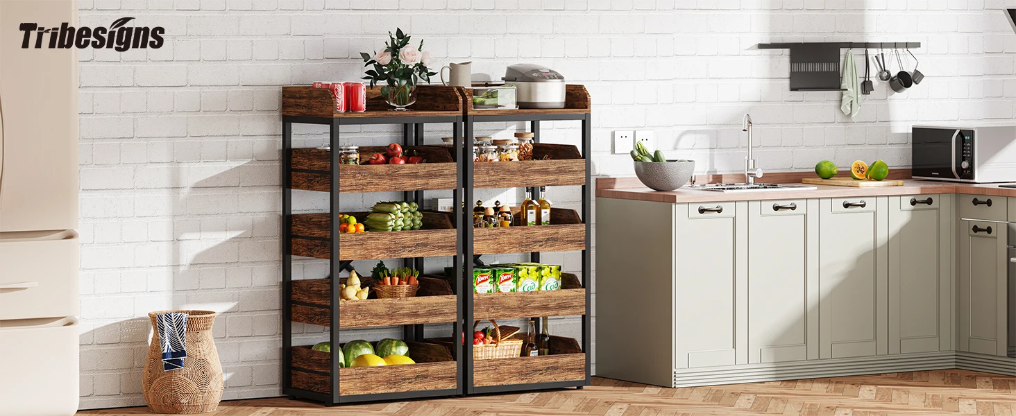 retail displays, fruit shops, and more.STRONG AND STURDY: The kitchen storage rack is made of high-quality
