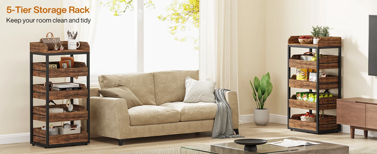MonoWood Wood Fruit and Vegetable Storage Rack, 5-Tier Pull-Out Snack Stand Fruit Basket Stand, Utility Shelf Organizer